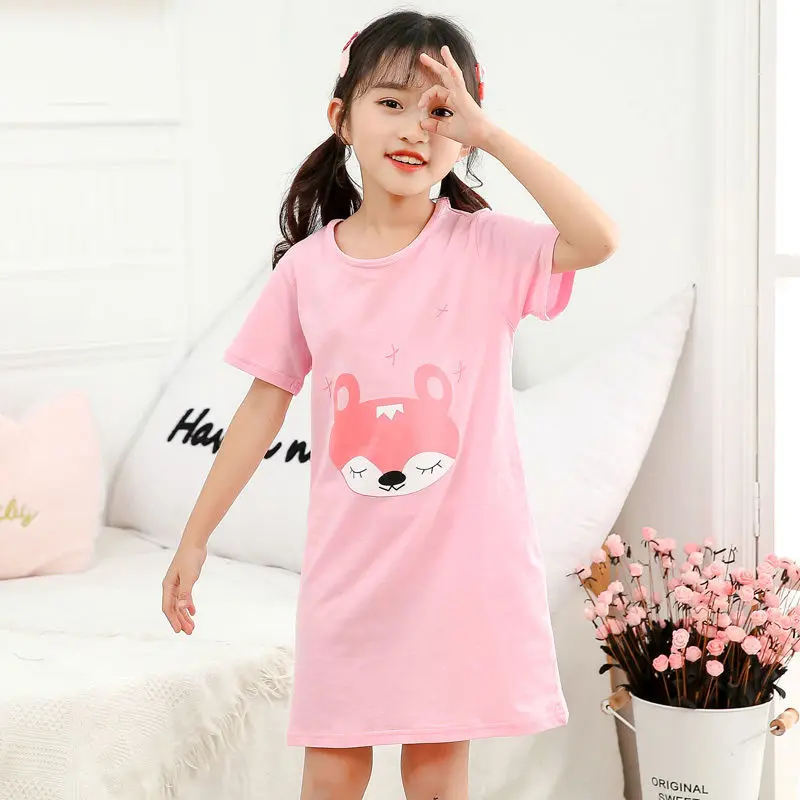 Ночная рубашка для девочек, из хлопка, с коротким рукавом