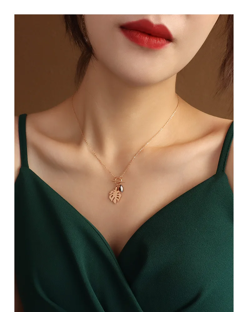 Ожерелье с подвеской монстера филодендрон из нержавеющей стали, жен...