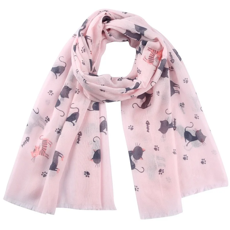 Модный женский шарф с принтом кошачьих следов, хлопковые шарфы, открытый расслабляющий шейный платок, шаль для сохранения тепла и защиты от ветра
