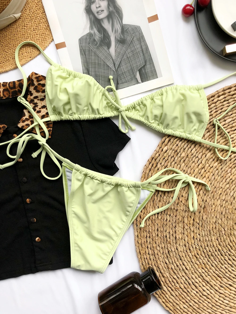Однотонный сексуальный женский купальник со складками и высокой талией, белый женский комплект бикини с поддержкой груди, новинка 2021, купальник подходит для большой попки