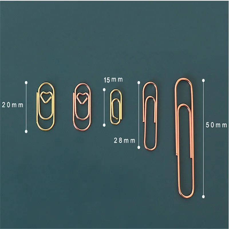 Зажим для бумаги в форме сердца, золотого и розового цветов, 50 цветов