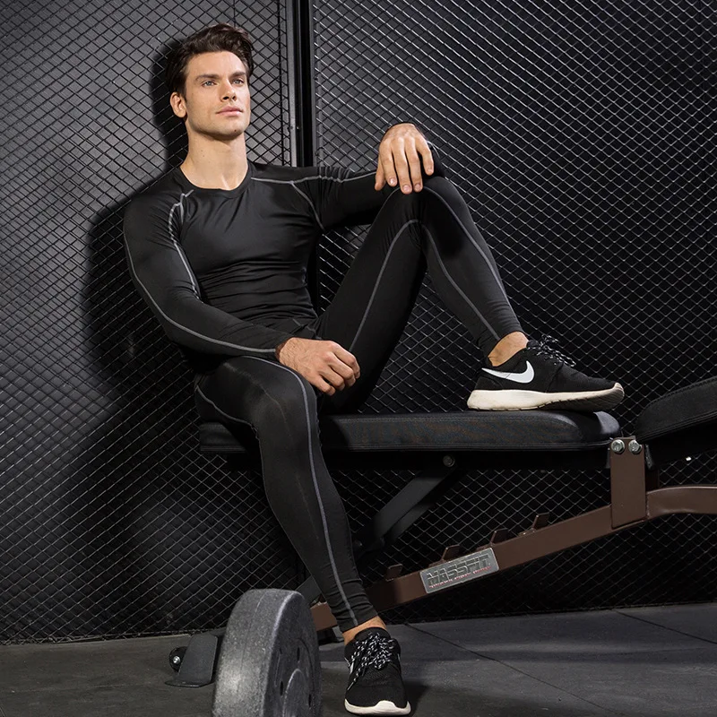 Мужские компрессионные тренировочные костюмы для бодибилдинга, бега...