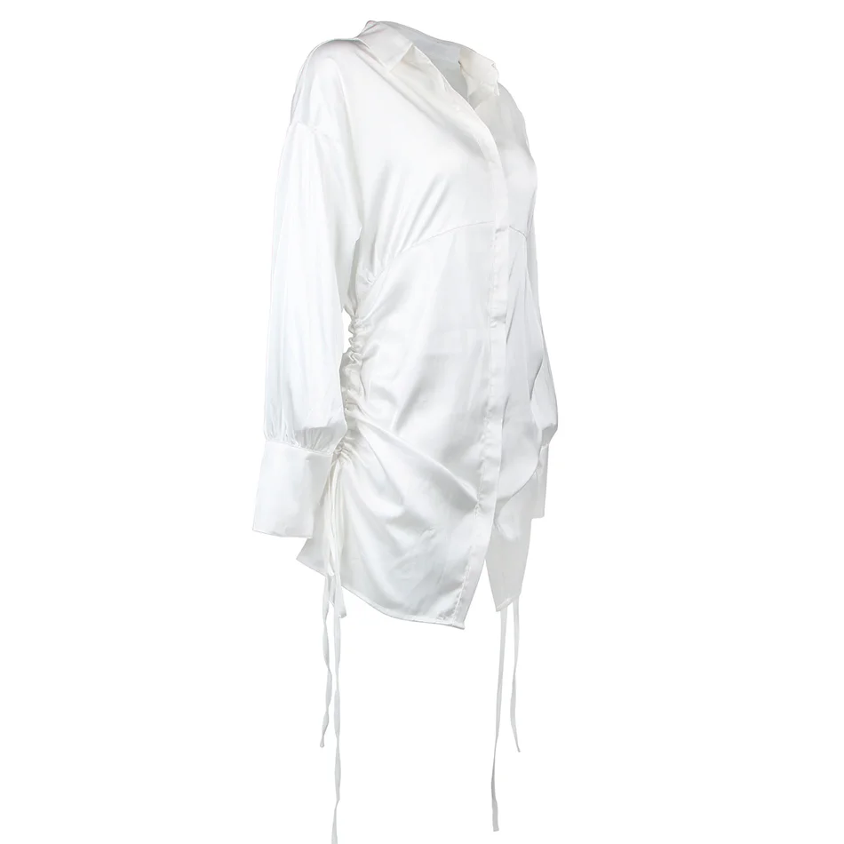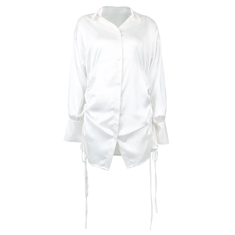 2021 женское платье-рубашка в стиле Кендалл Дженнер, белая шелковая Повседневная Верхняя одежда с длинными рукавами и кулиской