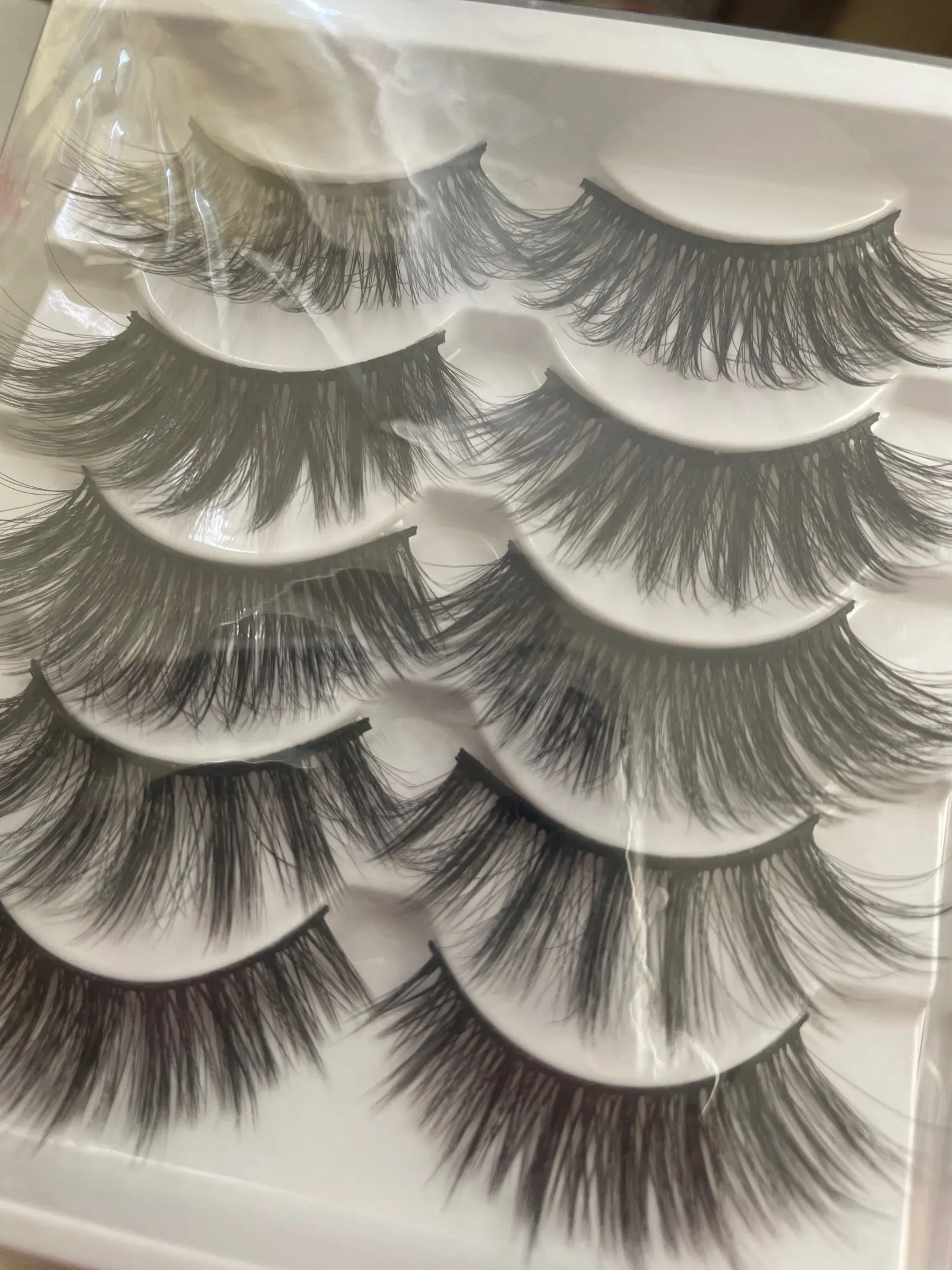 Они очень красивые, они выглядят очень долго, но когда вы надеваете их, они выглядят красиво и выделяют глаза, это имеет большой эффект глаз, они длятся долго, I even Sleep with them and waited with the Lashes Just Like perfect.... Рекомендуется.