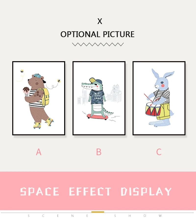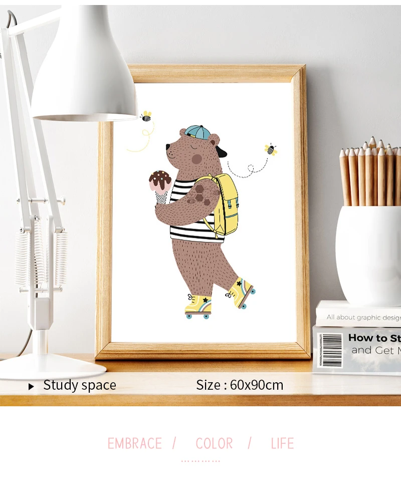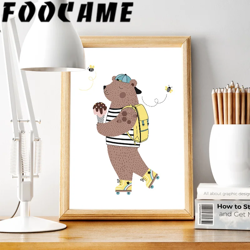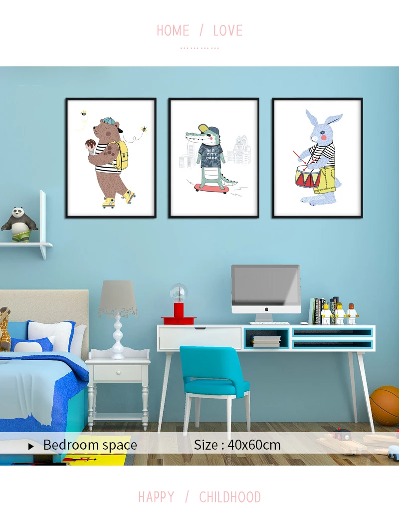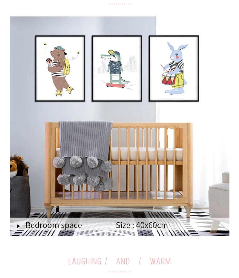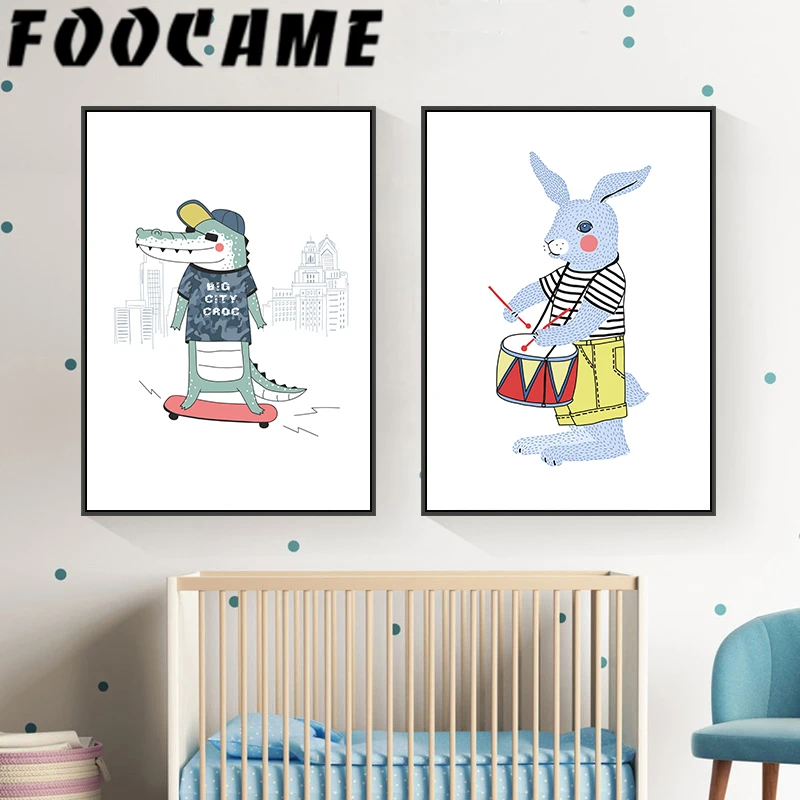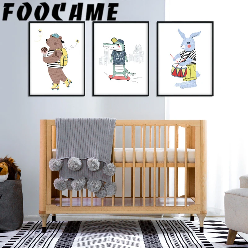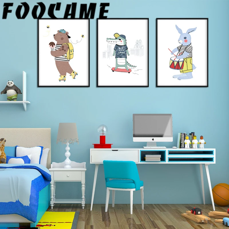 Медведь крокодил кролик постеры с животными художественная детская комната Скандинавская живопись на холсте, мультфильмы, печать, домашние фотографии, Настенный декор для детей