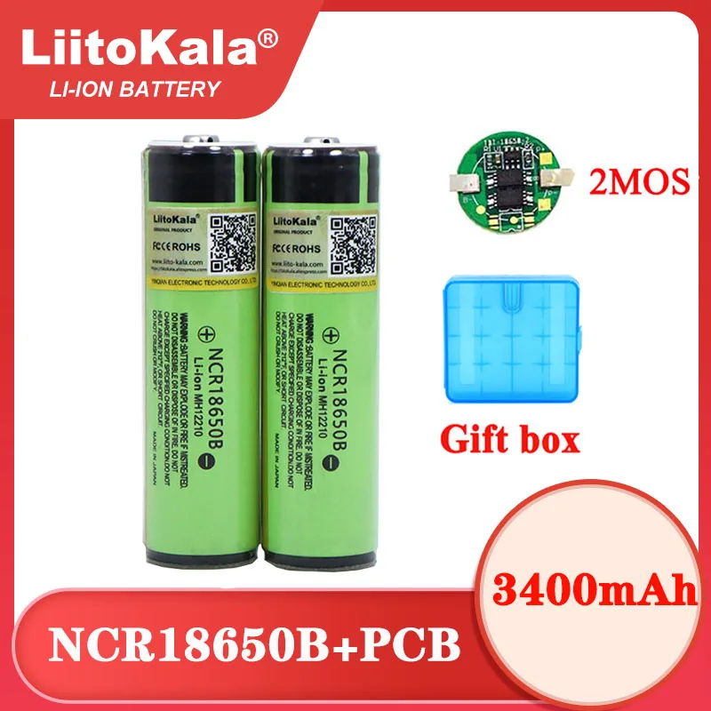 Умное устройство для зарядки никель-металлогидридных аккумуляторов от компании Liitokala: НОВЫЕ Безопасные оригинальный NCR18650B 3400 мАч, 18650 Перезаряжаемые Батарея с печатной платы 3,7 в для фонарик батареи + ящик для хранения