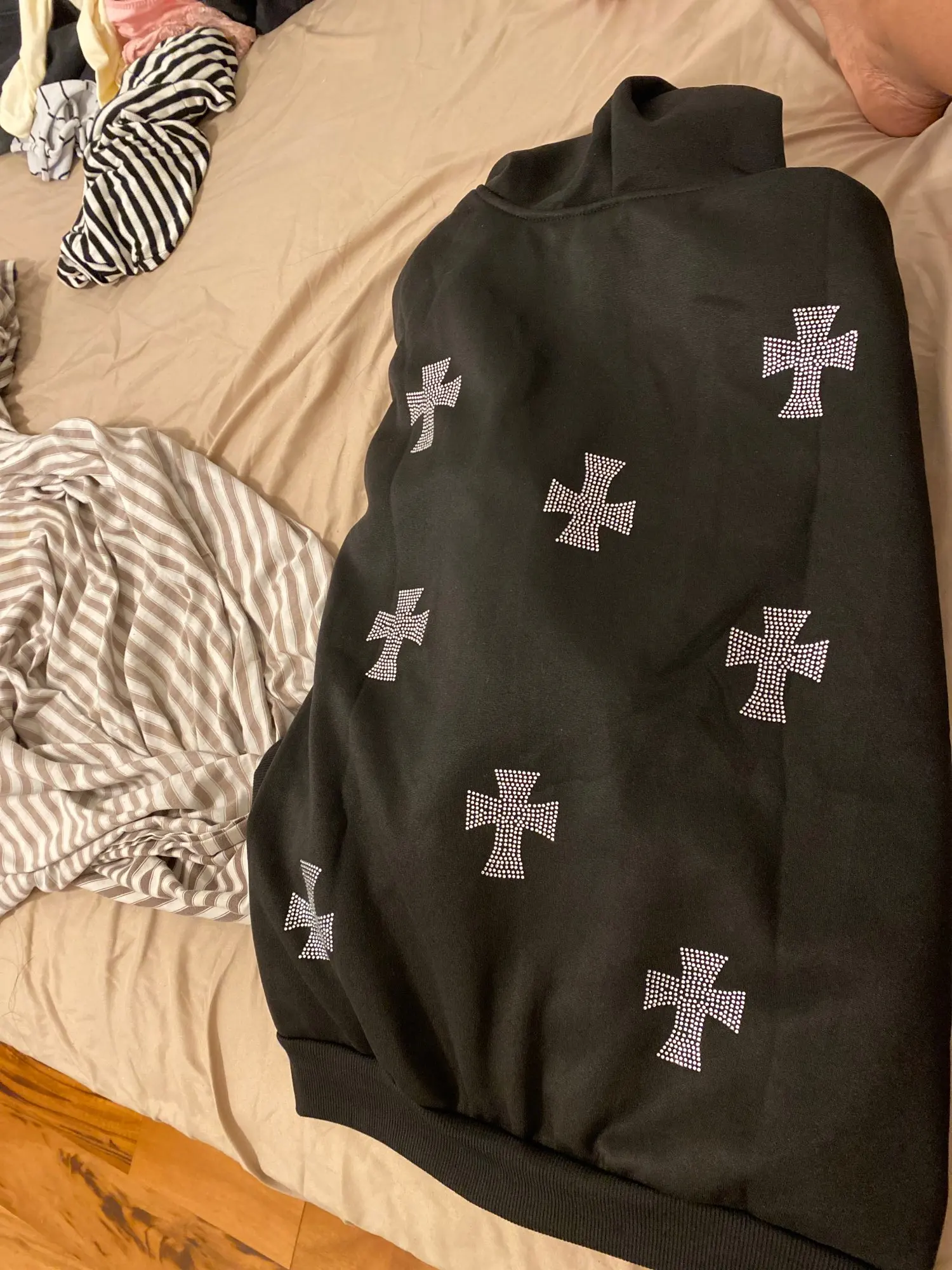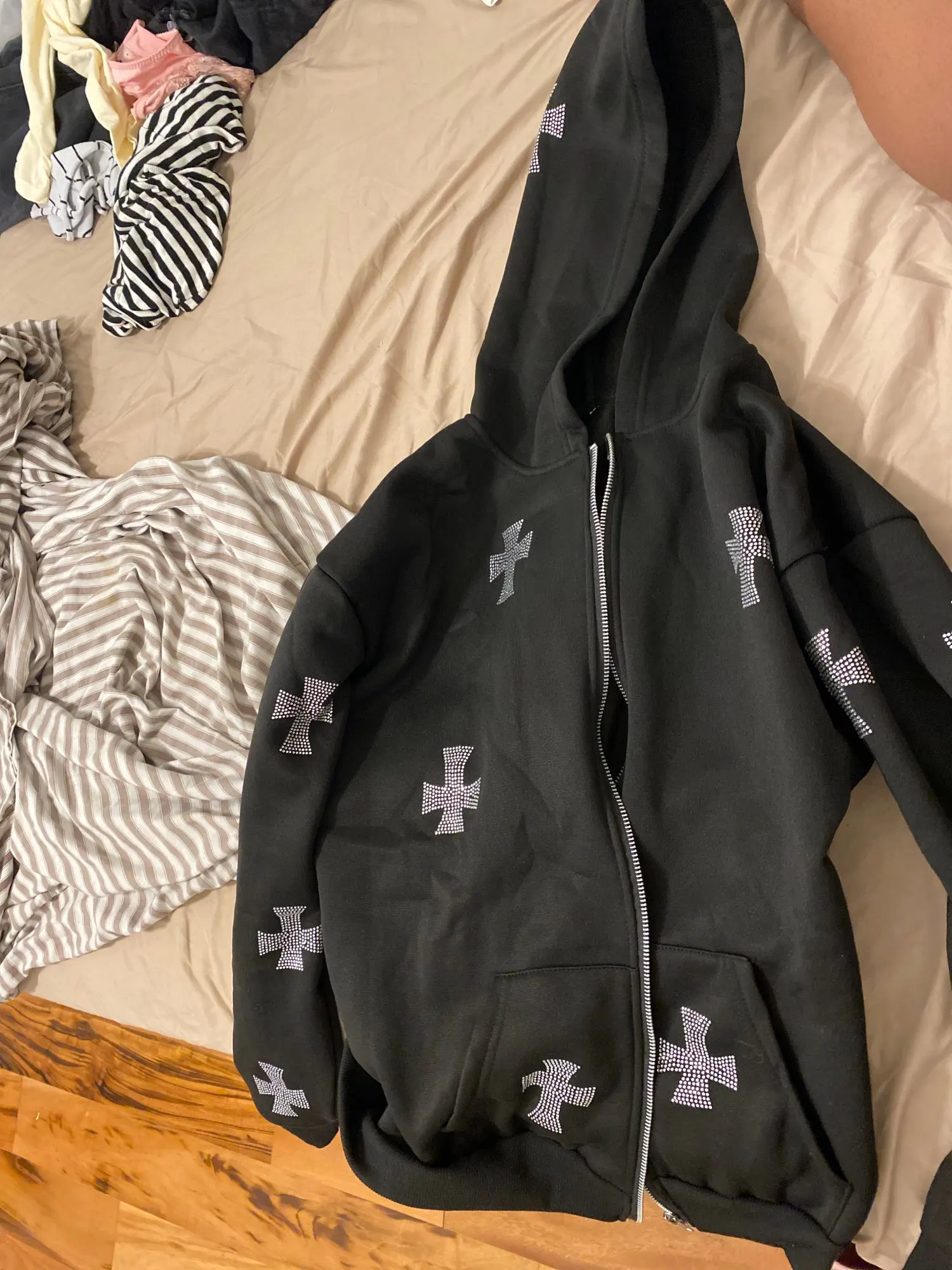 Товар просто отвратительного качества ‼️трикотаж как стекловата, флис очень тонкий, фурнитура самая дешёвая! За эти деньги такое дерьмо продают! Жаль потраченных денег ‼️