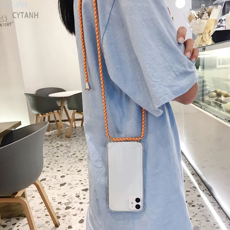 Прозрачный ТПУ бампер с ремешком и ожерельем, защитный чехол для те...