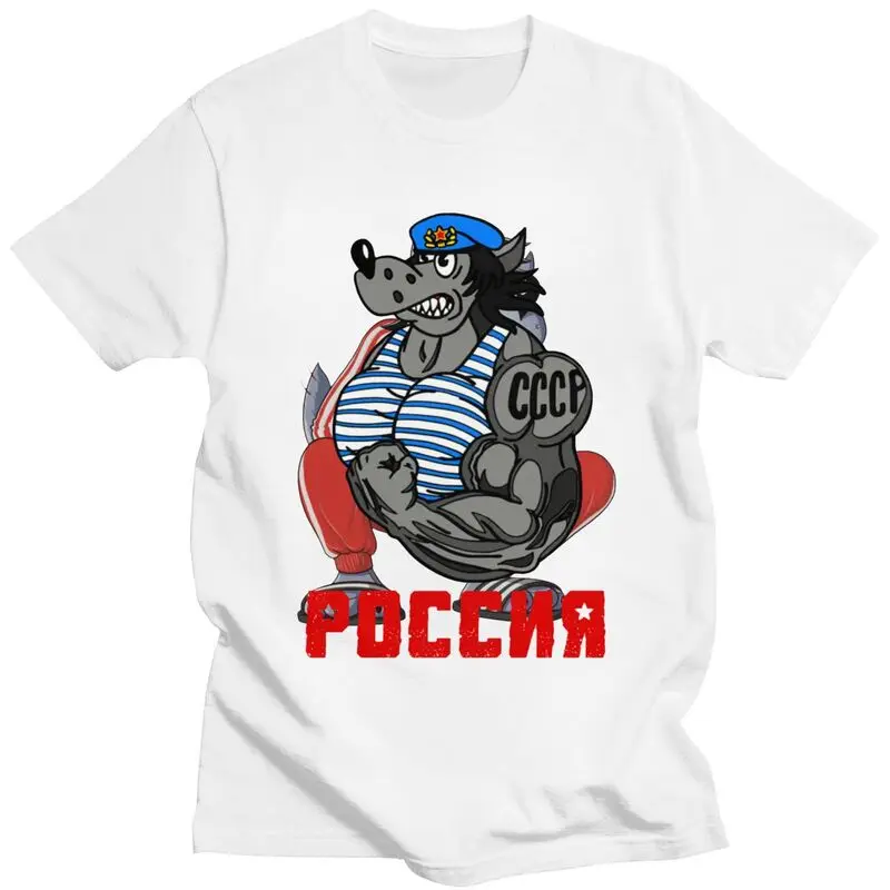 Футболка мужская хлопковая с коротким рукавом, с принтом волка русского десантника CCCP