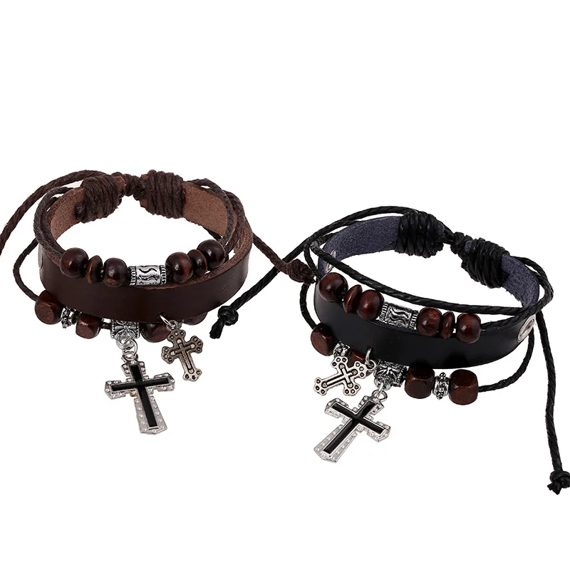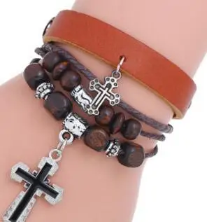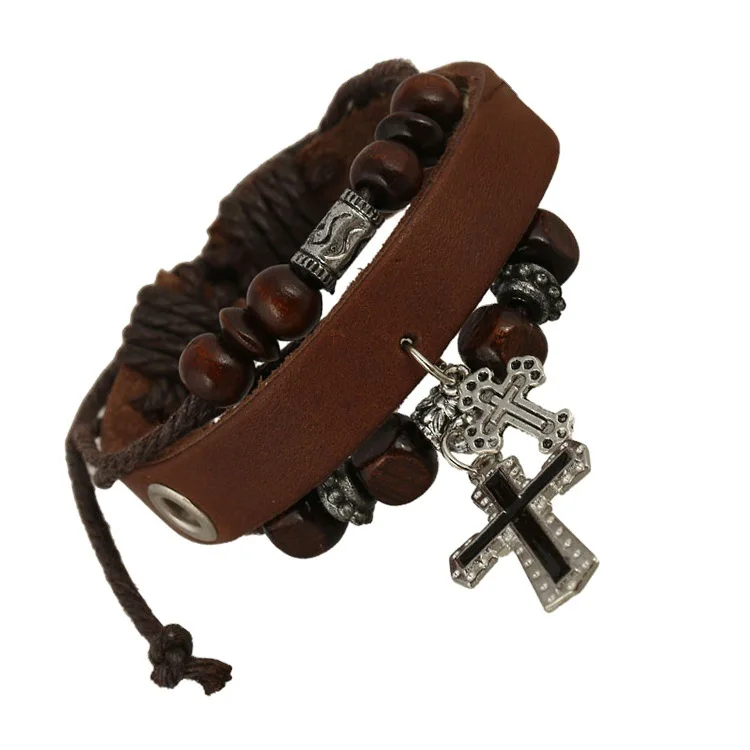 Браслет с шармами для женщин и мужчин, 4-слойный кожаный шнурок с б...