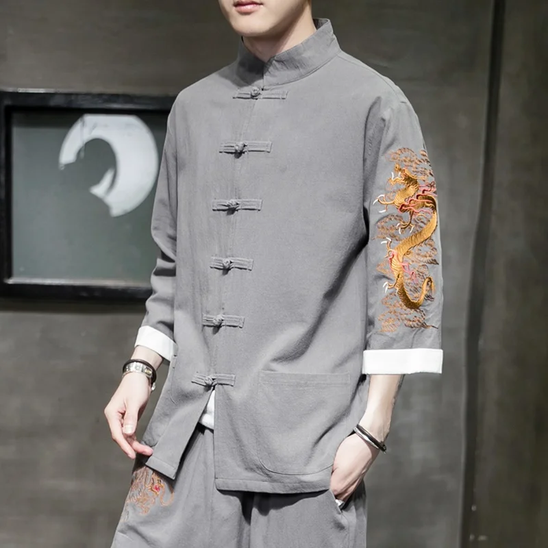 Традиционная рубашка с китайским драконом блузка Hanfu Wu Tang, Муж...