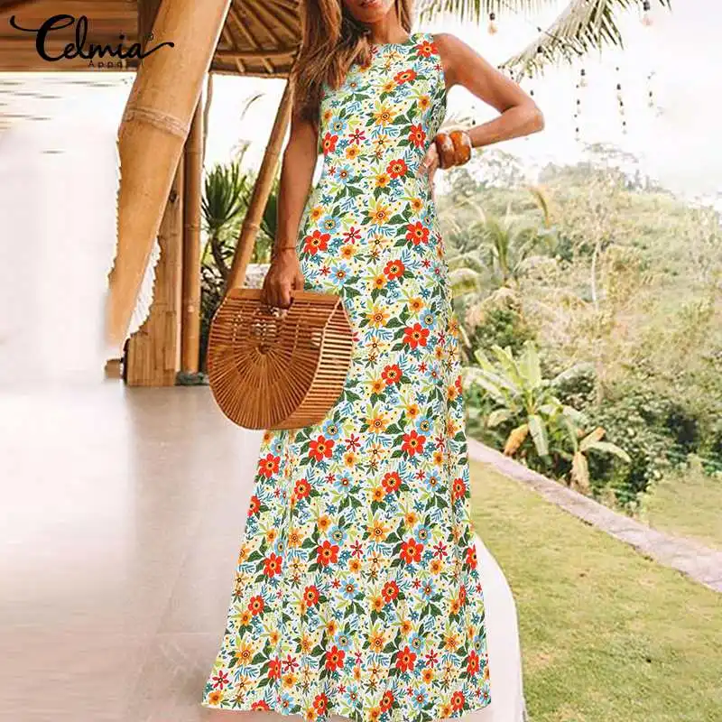 Celmia летнее богемное платье-макси с цветочным принтом 2022, женский сарафан, сексуальное повседневное вечерние ное вечернее пляжное платье большого размера без рукавов