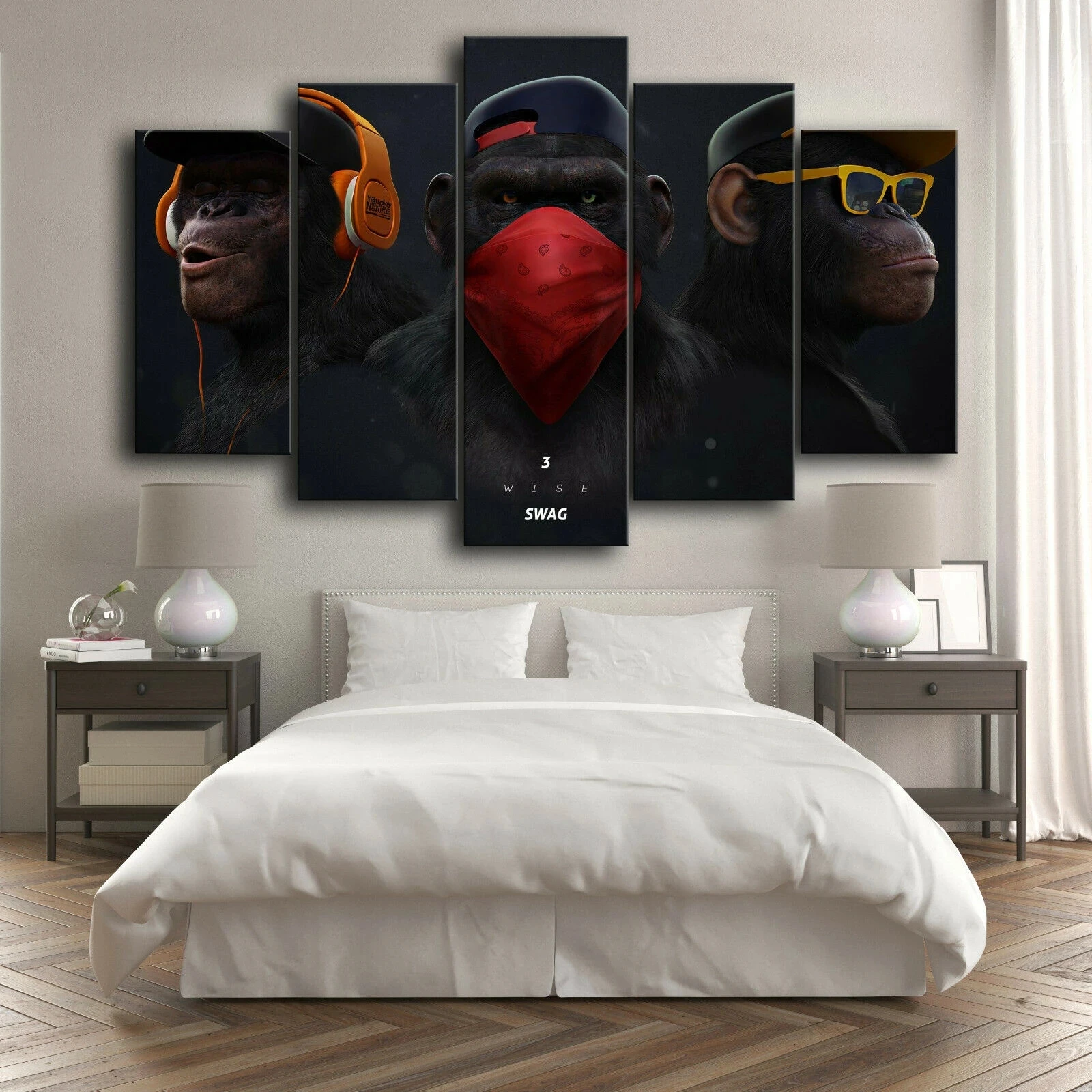 5 панельных картин на холсте, забавные постеры в виде обезьяны, животные, настенные картины, картины для гостиной, украшение для дома