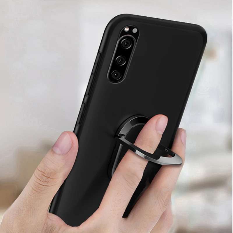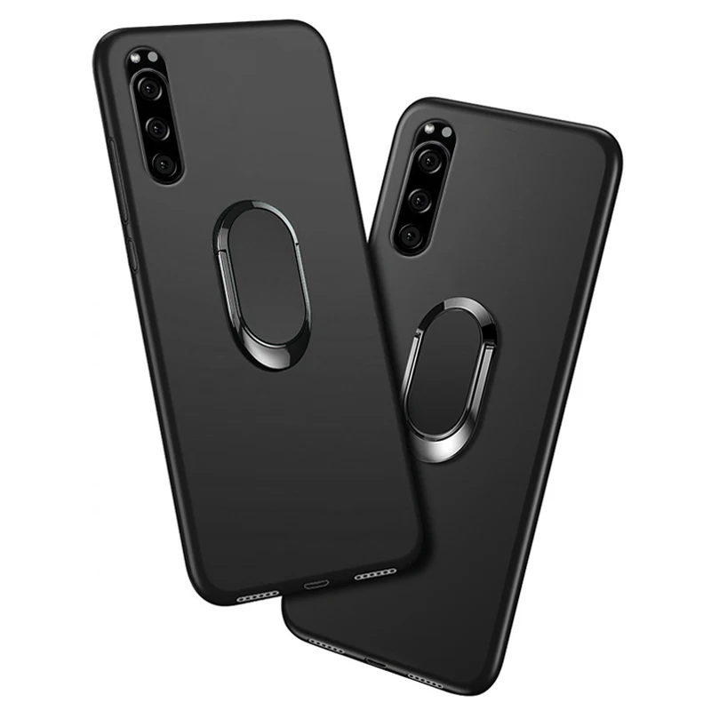 Чехол для Sony Xperia 5, чехол J8210, J8270, J9210, J9260 6,1 дюйма, красный, синий, черный, классическое кольцо на палец, вращение на 360 градусов, Мягкий силикон