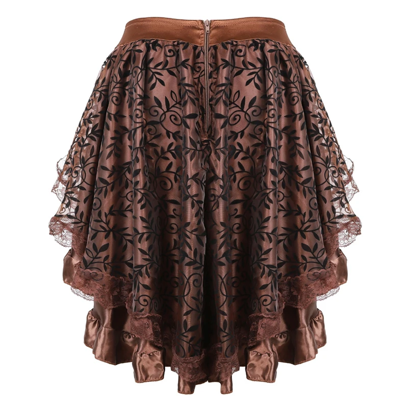 Черный Для женщин в викторианском стиле Асимметричные юбки атласная с рюшами с кружевной отделкой Молния сзади Готический юбки стимпанк Винтаж корсет юбка