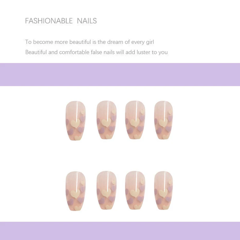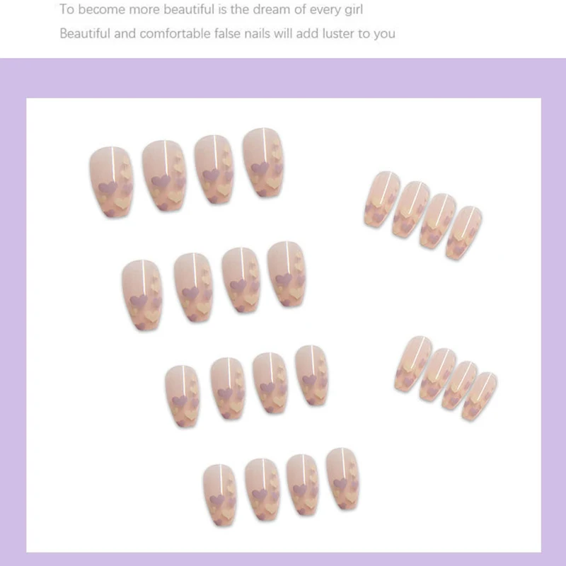 24 шт Искусственные ногти с использованием такого клея, с принтом сердце, одежда с длинным рукавом; Из модного маникюра, маникюрный набор накладных ногтей "нажмите на пригодно для ногтей для девочек