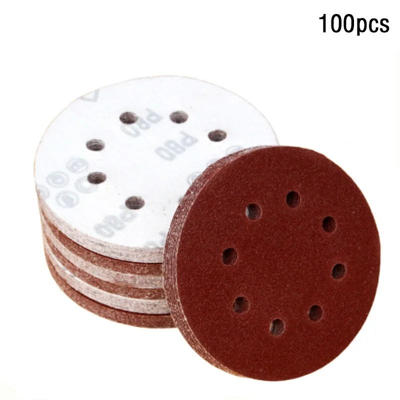 Диски наждачные, 100 мм, 5 дюймов, 8 отверстий, 40 Грит, 125 шт.