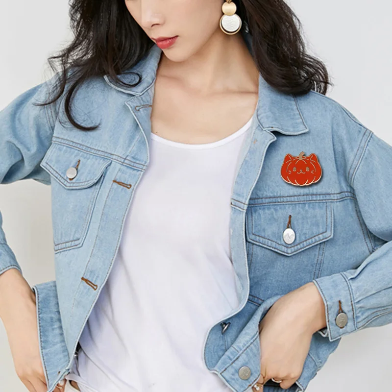 Эмалированная брошь в виде кошки, тыквы, металлическая брошь, краси...