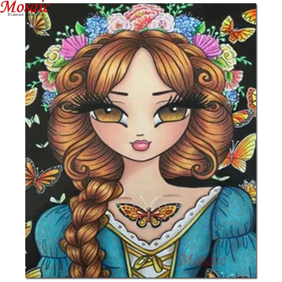 Алмазная 5D картина для девочек с большими глазами, длинная оплетка, сделай сам, круглый набор для алмазной вышивки, домашний декор, детский подарок, мультяшная фея