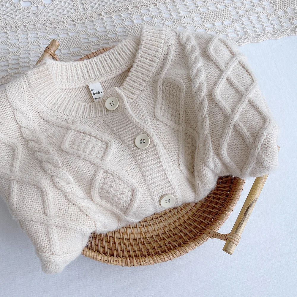 Вязаный кардиган для мальчиков и девочек, однотонный, Осень-зима