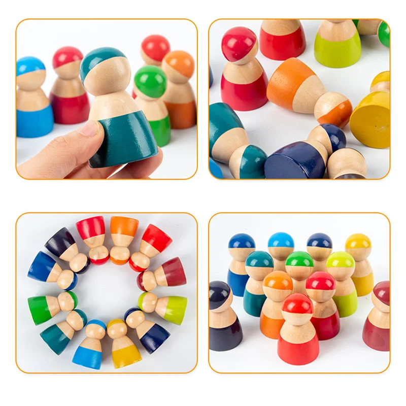 Монтессори набор из 12 радужных кукол-колышек, деревянные куклы для...