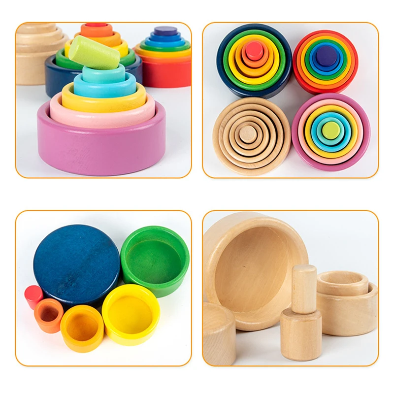Деревянные блоки Монтессори, Разноцветные деревянные детские игрушки, естественный подходящий Радужный штабелер, обучающая счетная игрушка