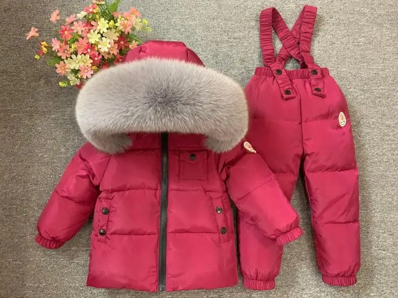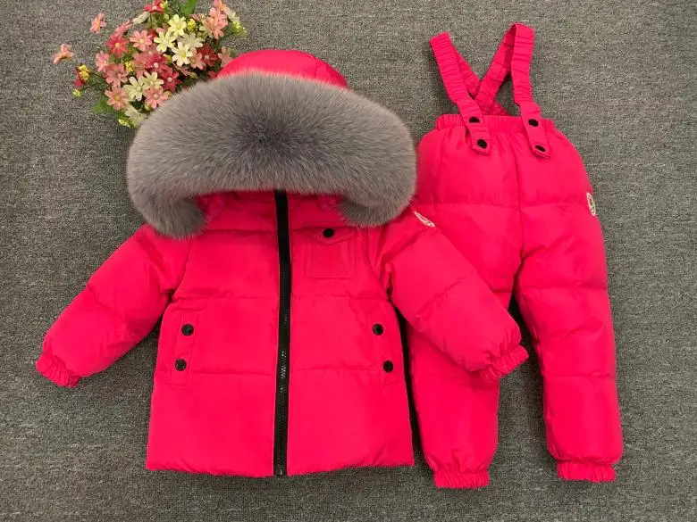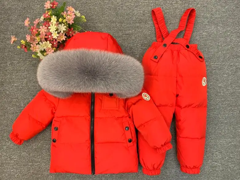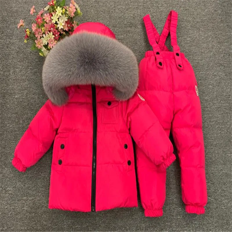 Детский лыжный костюм с натуральным мехом дизайнерская детская пуховое пальто и штаны для маленьких мальчиков и девочек 0, 2 4 6 8 10 12 лет куртки для катания на лыжах набор