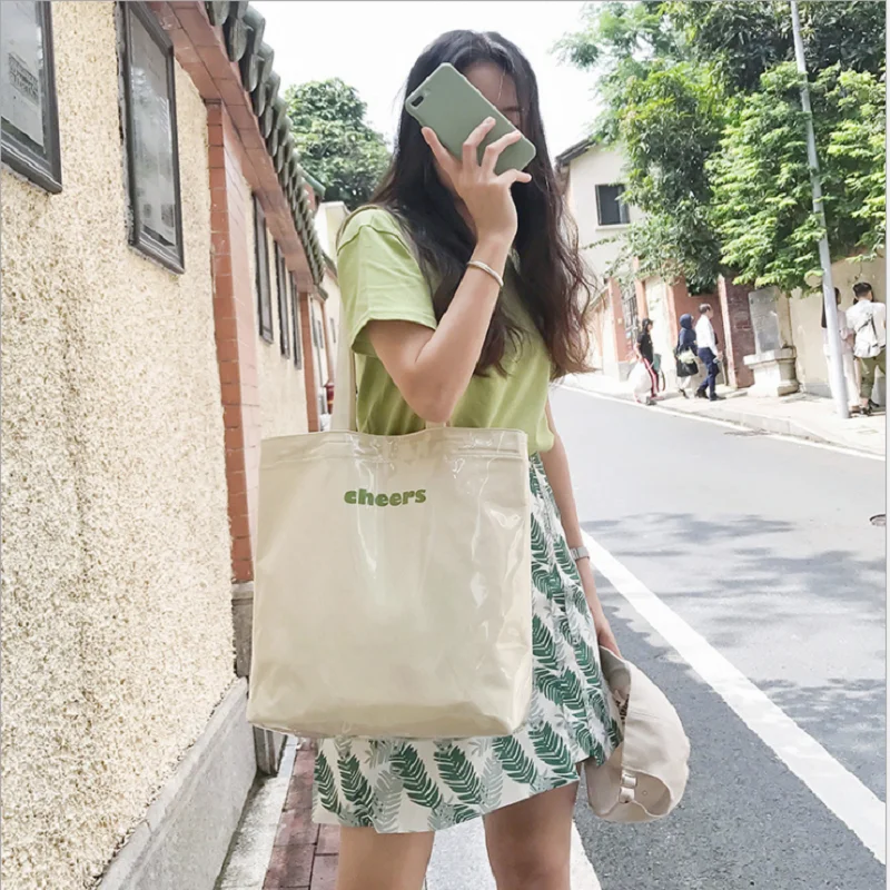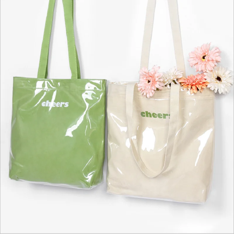 Хлопковая и Льняная сумка для защиты окружающей среды, Корейская креативная Холщовая Сумка из ПВХ с цветным низом