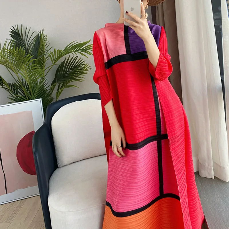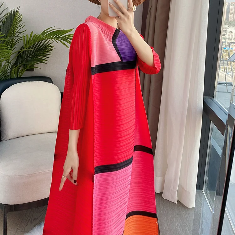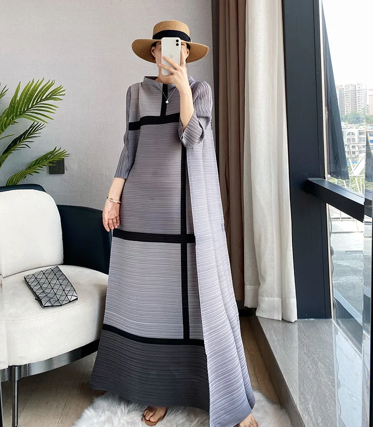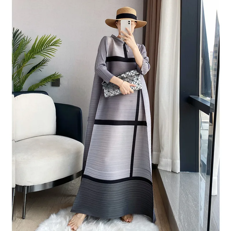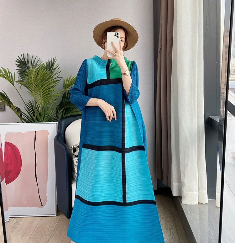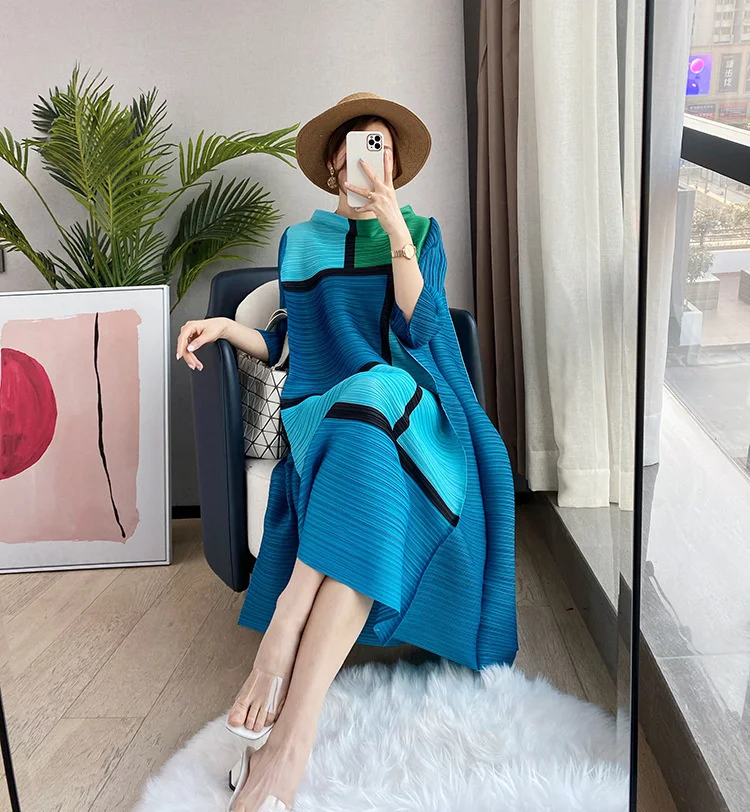 Женское плиссированное платье-макси DEAT, повседневное свободное платье с воротником-стойкой и рукавами выше семи, модель 15XF771 большого размера на лето, 2022