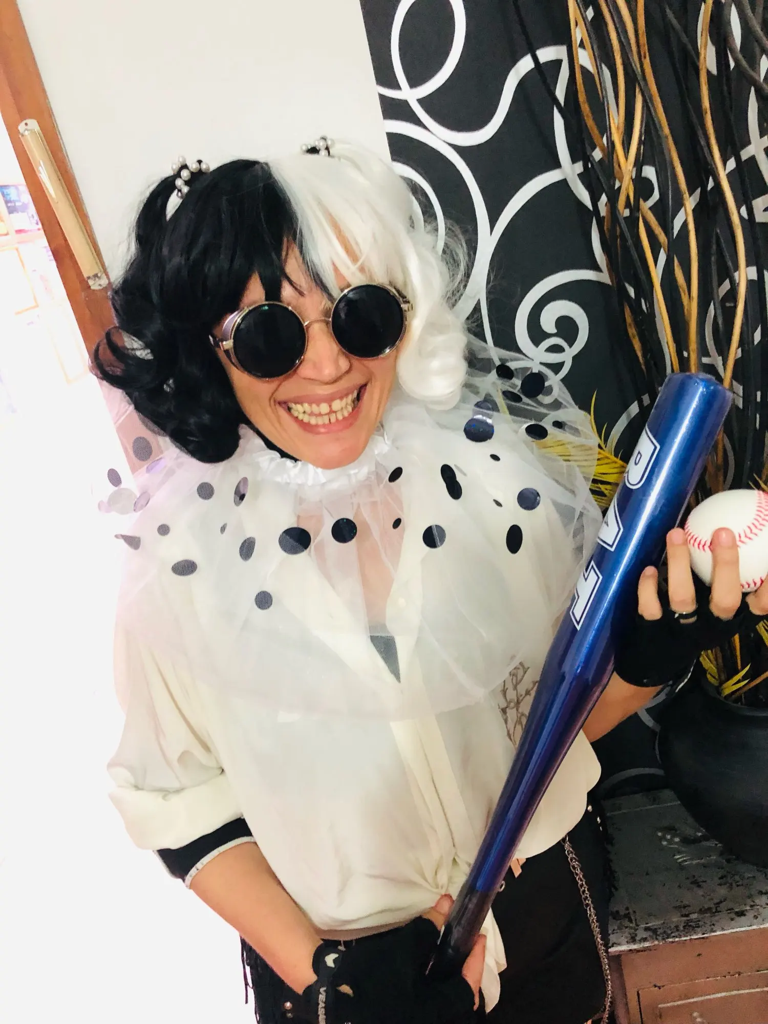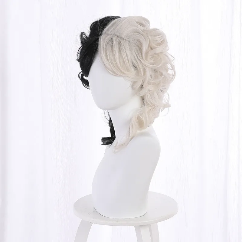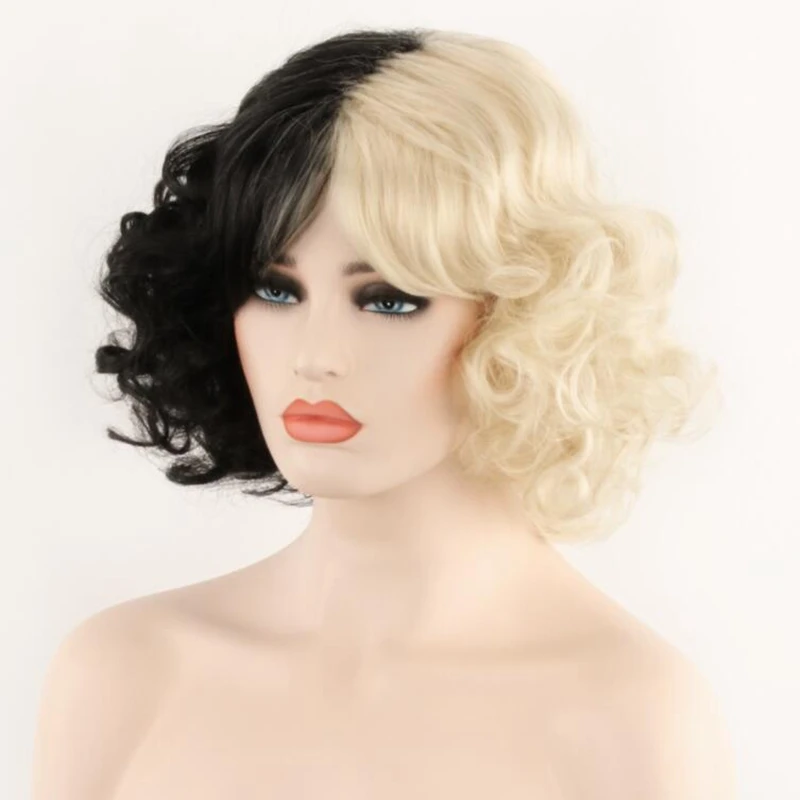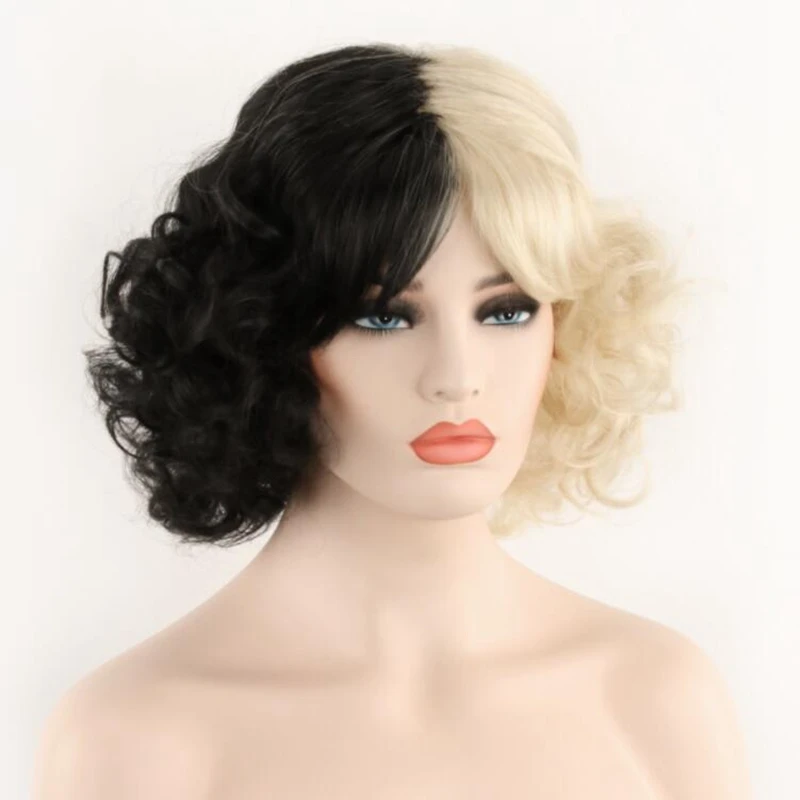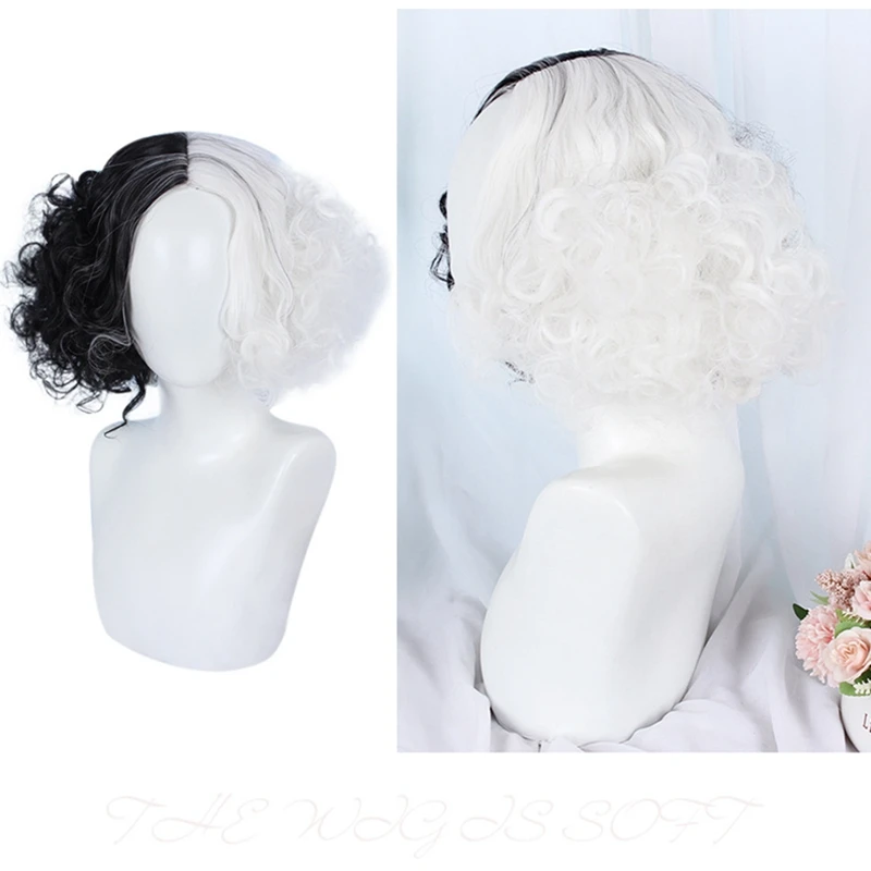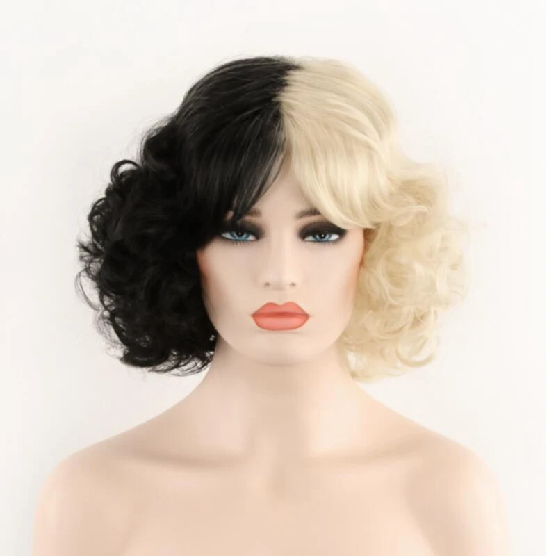 Парик JOY BEAUTY из фильма Круэлла, Круэлла, Эмма Стоун, короткие черные, белые, черные, коричневые кудрявые волосы, реквизит для косплея