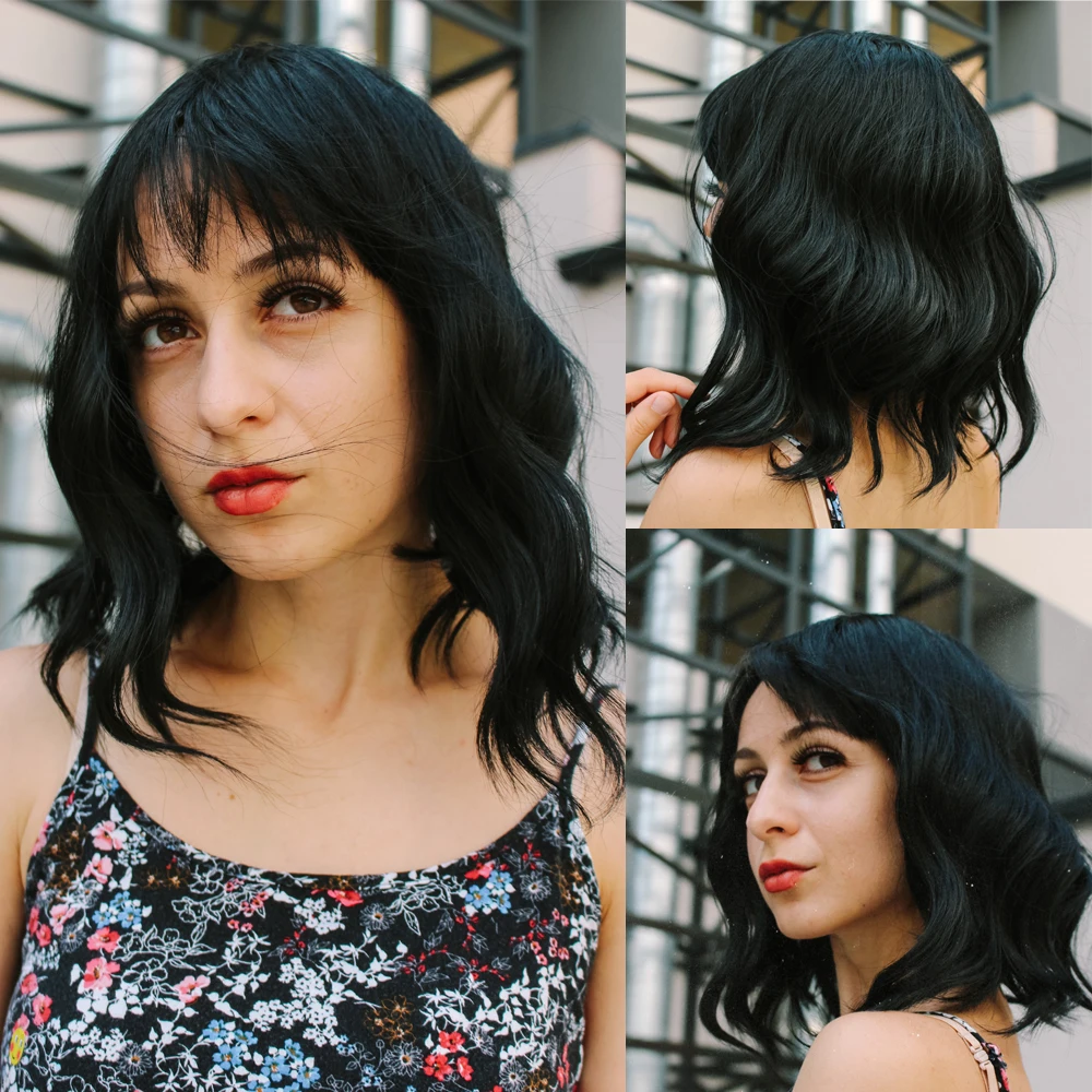 Качественный короткий парик. Себе я взяла черный. Вес около 150 г. Длина 35 см. Челка ниже линии бровей. Парик выполнен из термостойкого волокна. Качество волокна мне понравилось. Волос жёсткий, но при этом он отлично расчёсывается и не спутывается. При солнечном свете может отливать в синий оттенок. Больше походит на натуральный волос. Имеет лёгкую волну. Внутри "шапочку" можно регулировать под свой объем головы. Больше в моем inst @julia_heartbeat