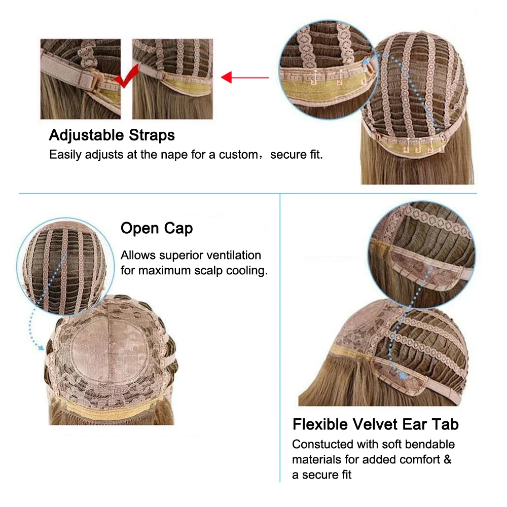 It fits fine and looks nice, but the wig is much shorter than the images advertise. The pictures show shoulder-length hair, but only a few wefts were that long - most of the wig was much shorter. Overall disappointing.