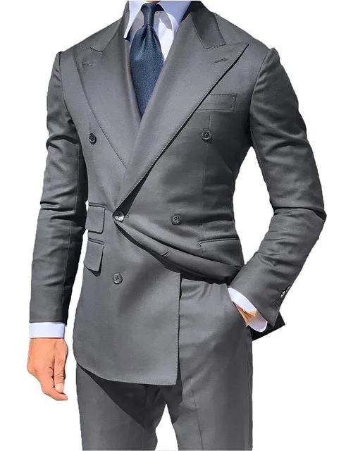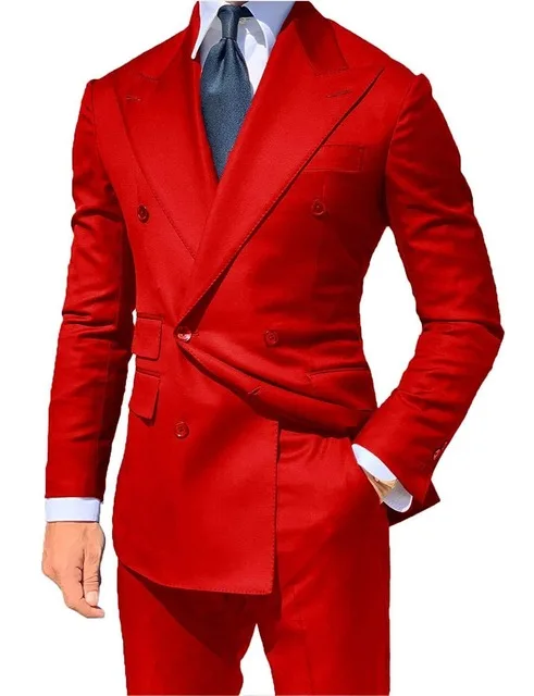 Классический стиль, двубортные красные смокинги для жениха, пиковые лацканы, мужские блейзеры, костюмы (куртка + брюки)