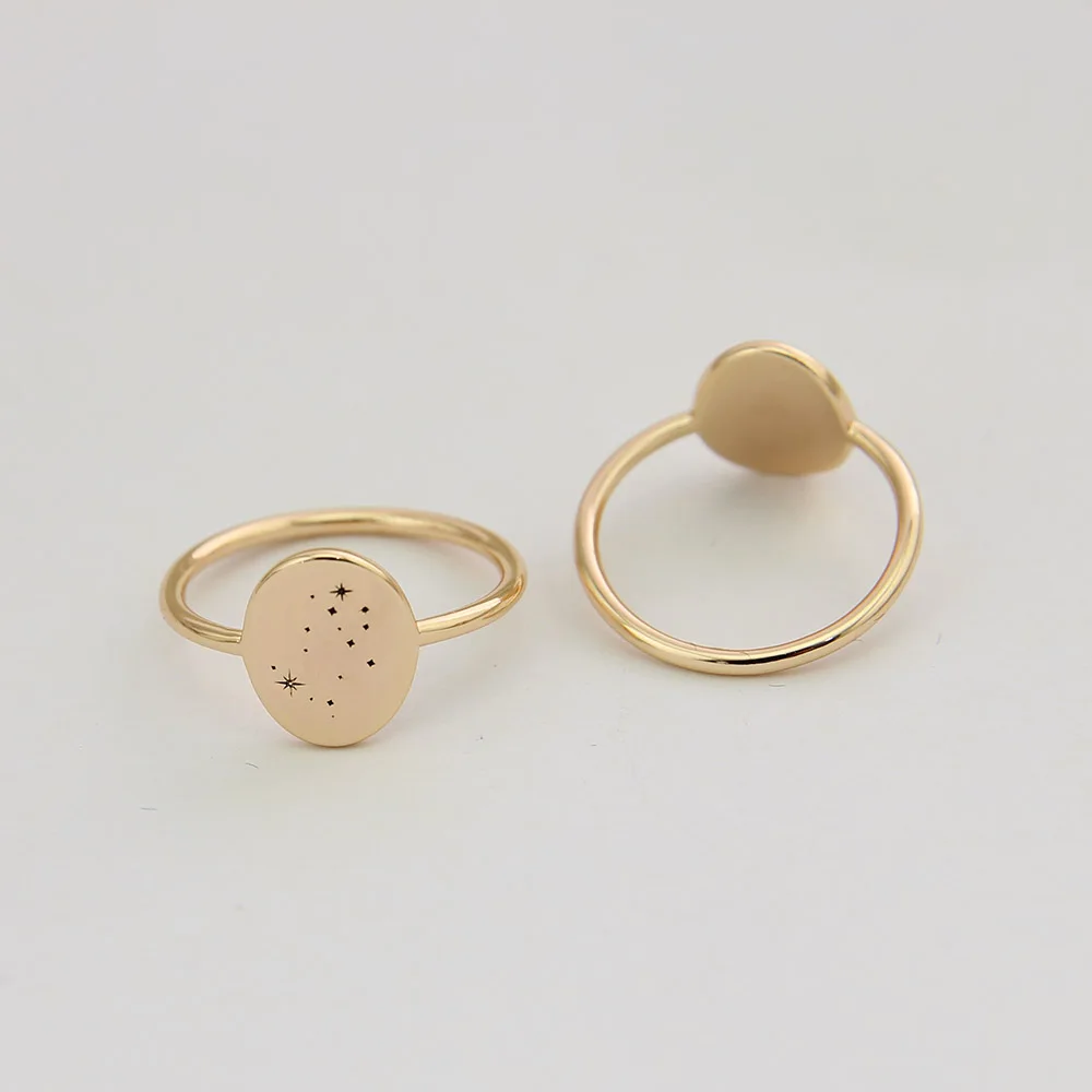 Простое индивидуальное овальное позолоченное кольцо Zodia GEMINI с гравировкой женское кольцо на палец
