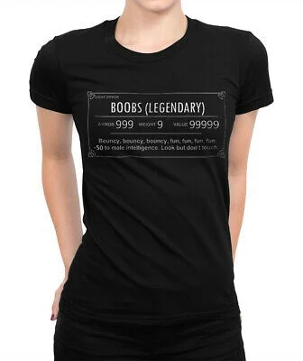Сиськи легендарный смешной геймер футболка, Skyrim Для женщин футболка