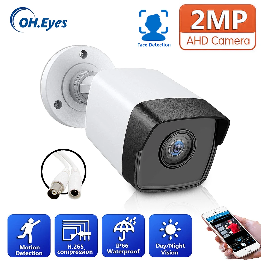 Аналоговая камера AHD 2 МП 1080P, проводная цилиндрическая IP-камера безопасности, наружная погодозащищенная камера ночного видения для систем видеонаблюдения, DVR, охранная система HD