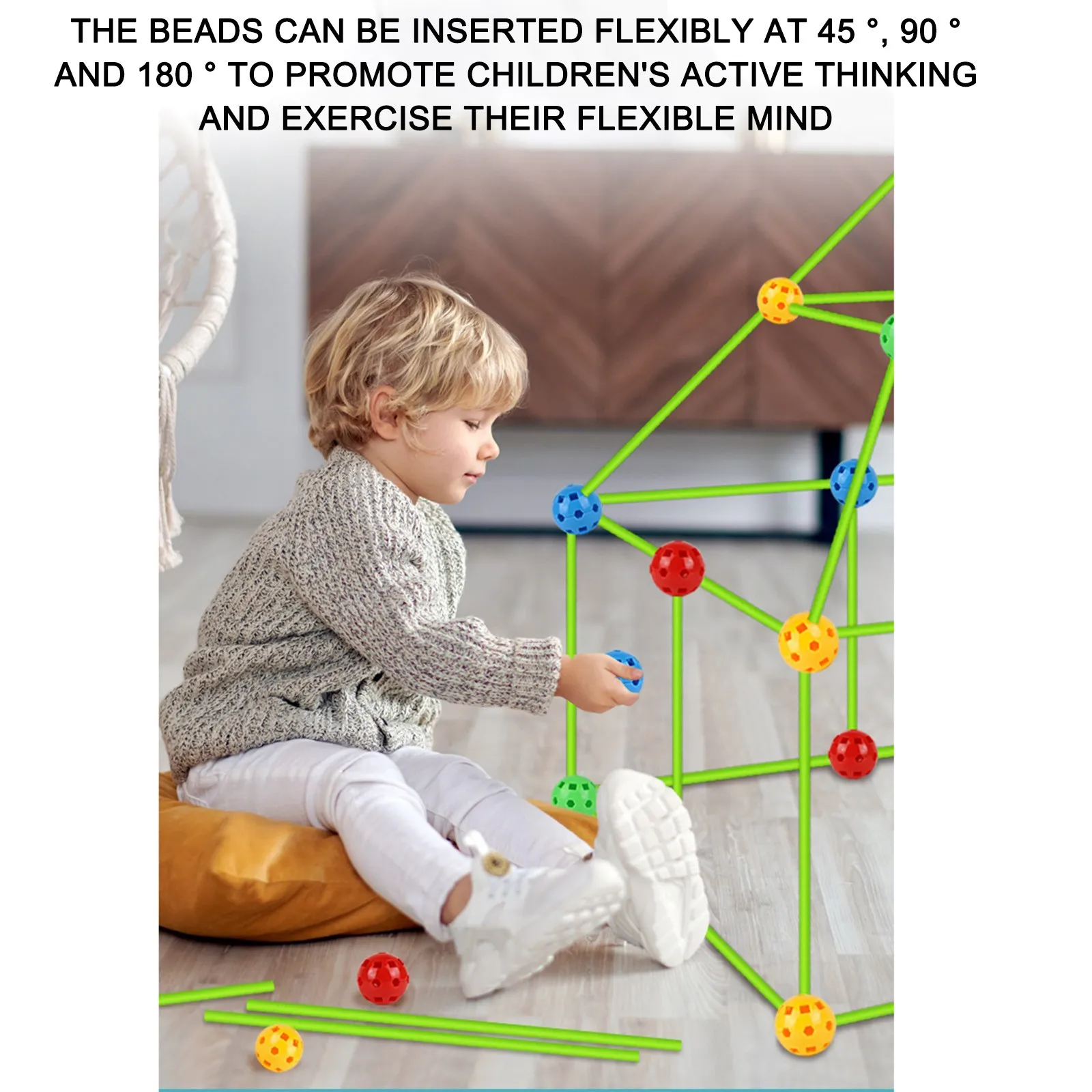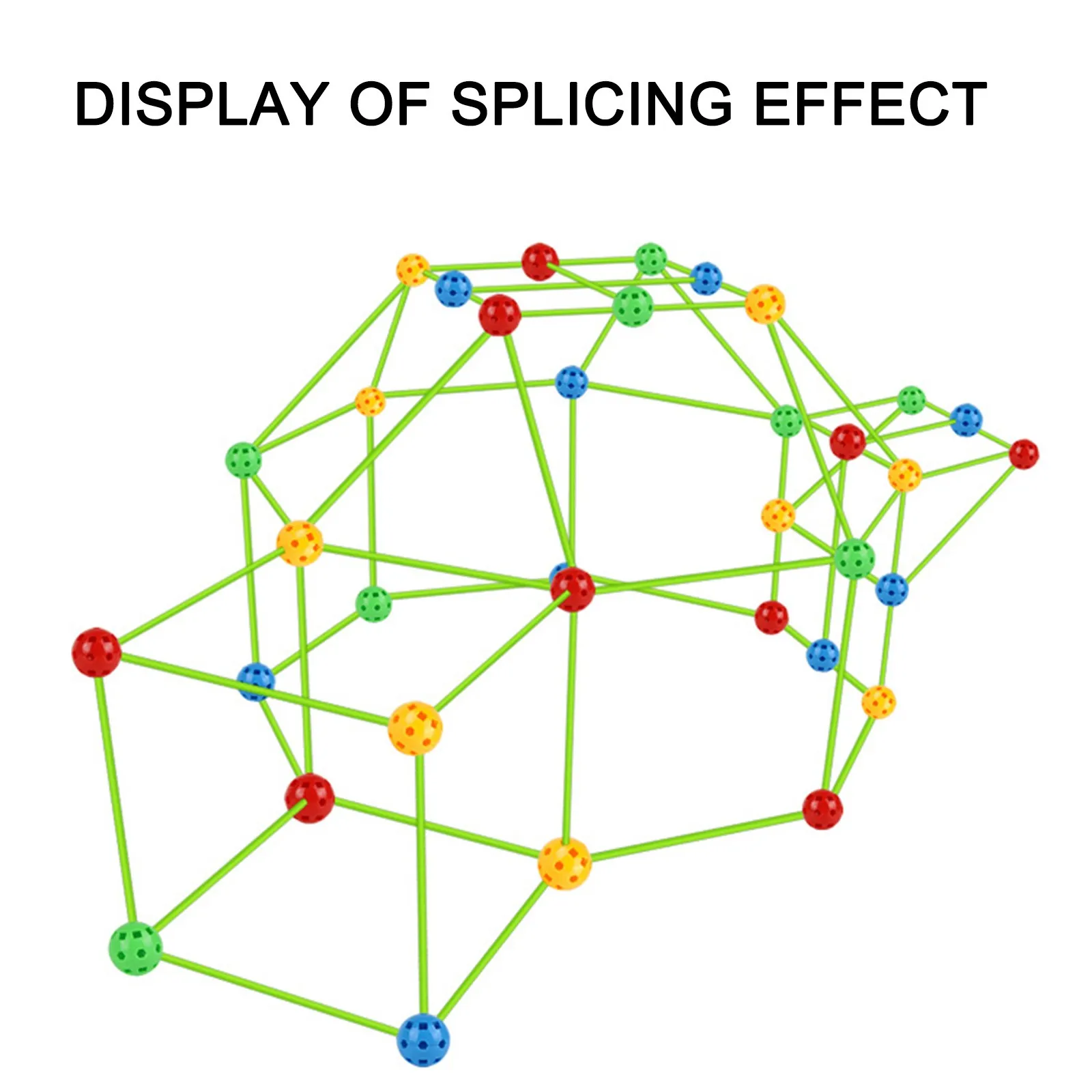 Прочный и портативный и легко построить: Изготовлен из прочного и высококачественного пластика. Пластиковые штифты легко и безопасно вставляются в шаровые соединители, которые являются многомерными и с несколькими отверстиями, направление штифтов может быть изменено. Вам не придется беспокоиться о разрыве конструкций.