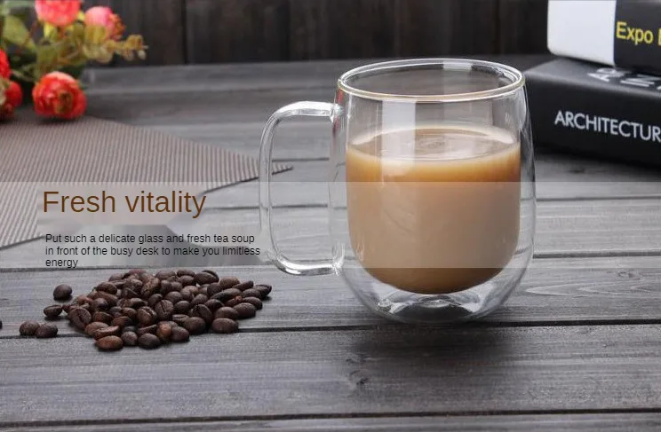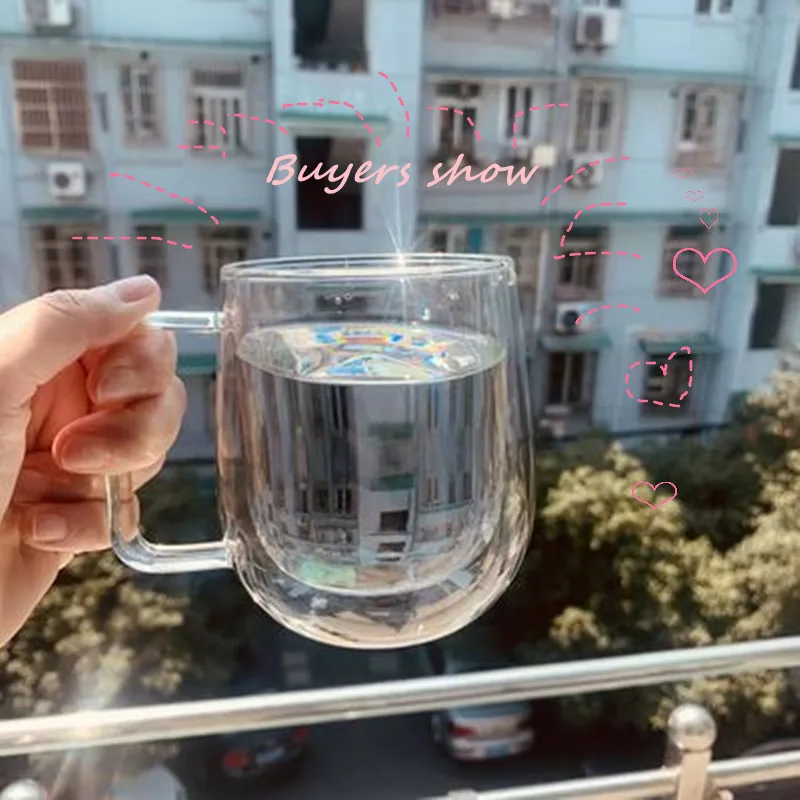 Стеклянная кофейная чашка Ahdiha350ml с двойными стенками, термостойкая большая с ручкой, креативные кружки для молока и чая, прозрачная посуда для напитков, ручная работа