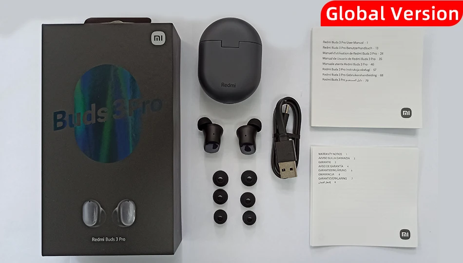 Посылка ------------ Redmi Airdots 3 Pro x 1 пара/зарядный чехол x 1/Руководство x 1/зарядный кабель Type-C x 1/затычки для ушей x 3 пары (S/M/L, М уже установлен)