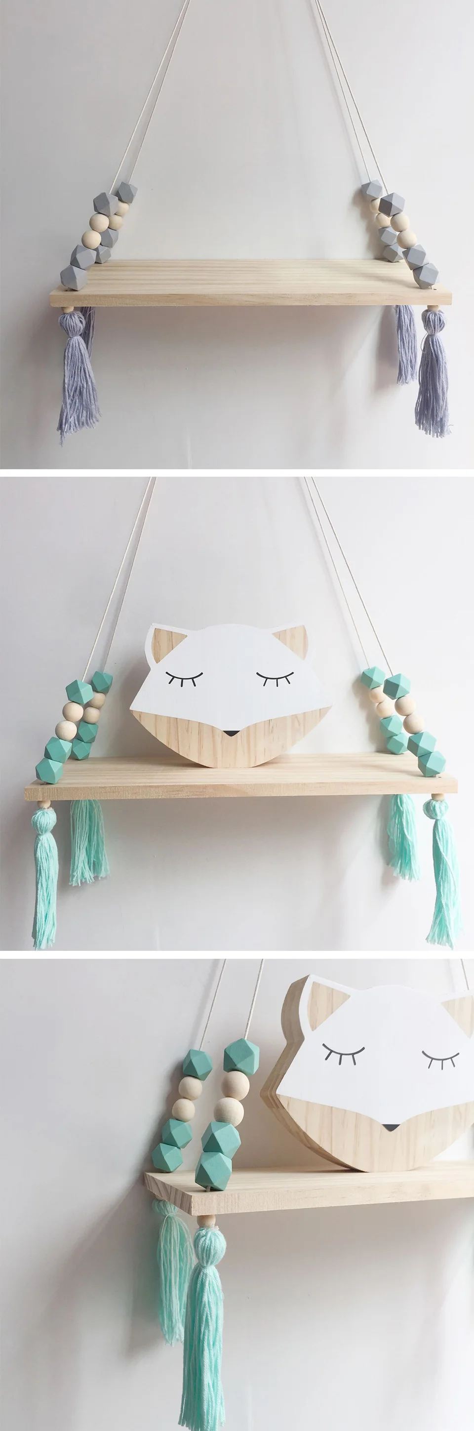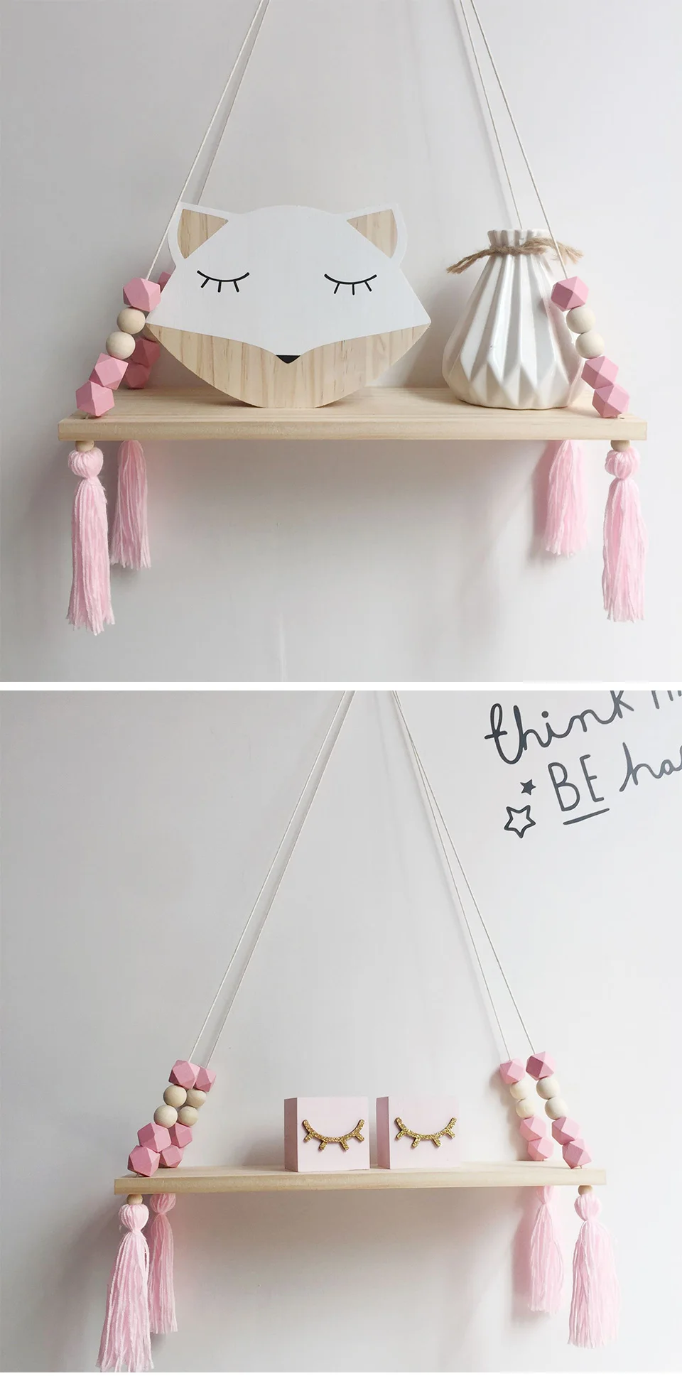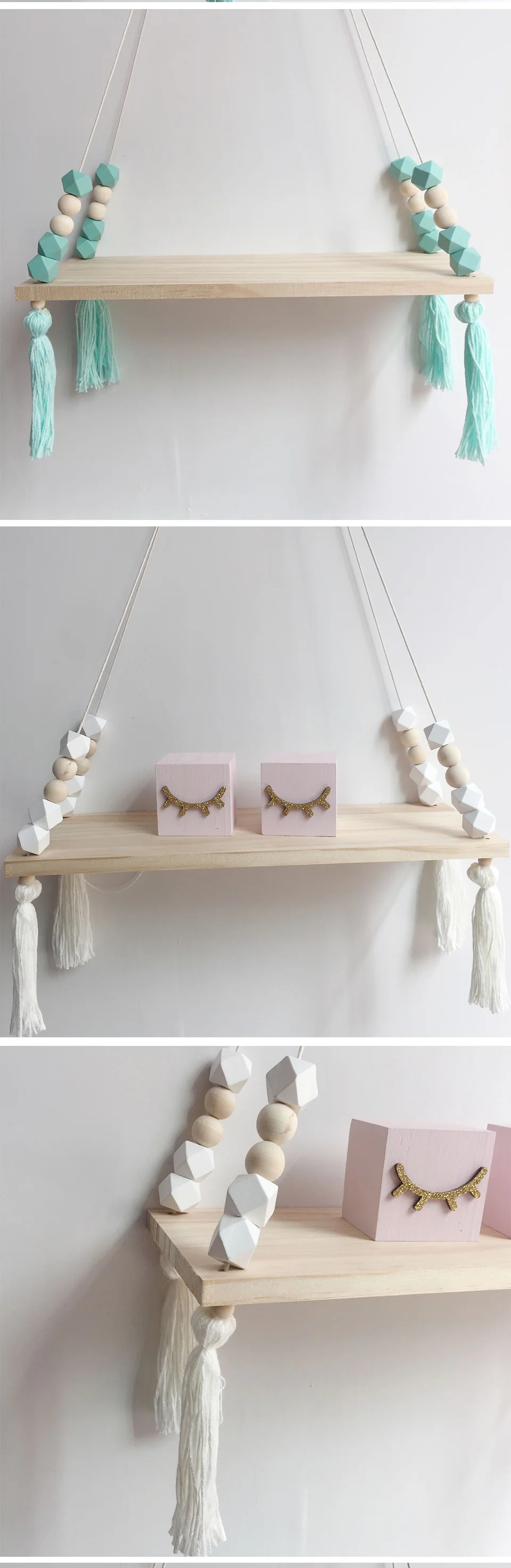 Скандинавский декор для детской комнаты, полка с кисточками, настен...