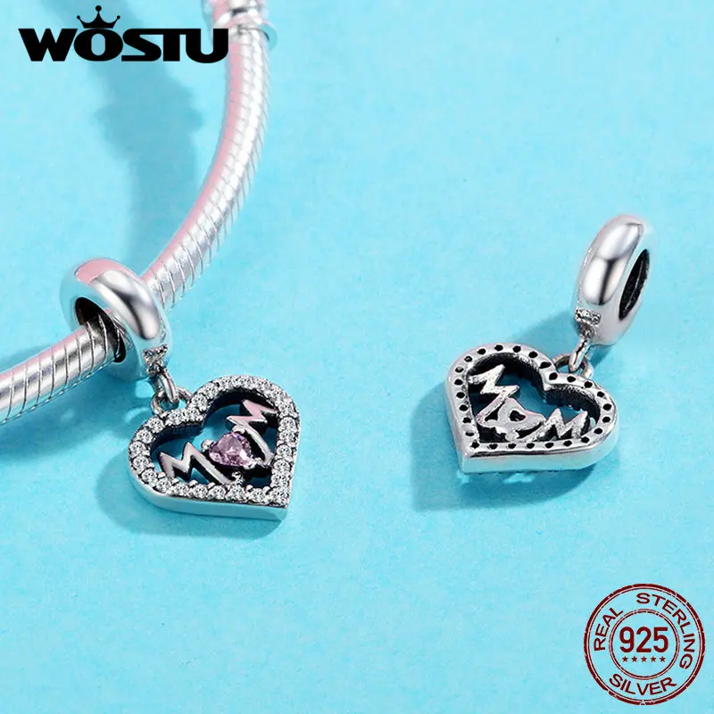 WOSTU 925 стерлингового серебра кулон сердце серии очарование бисера, подходят к оригинальному браслету, ожерелье, сделай сам, ювелирное изделие, подарок