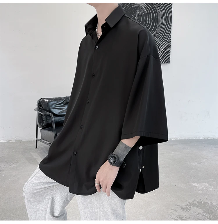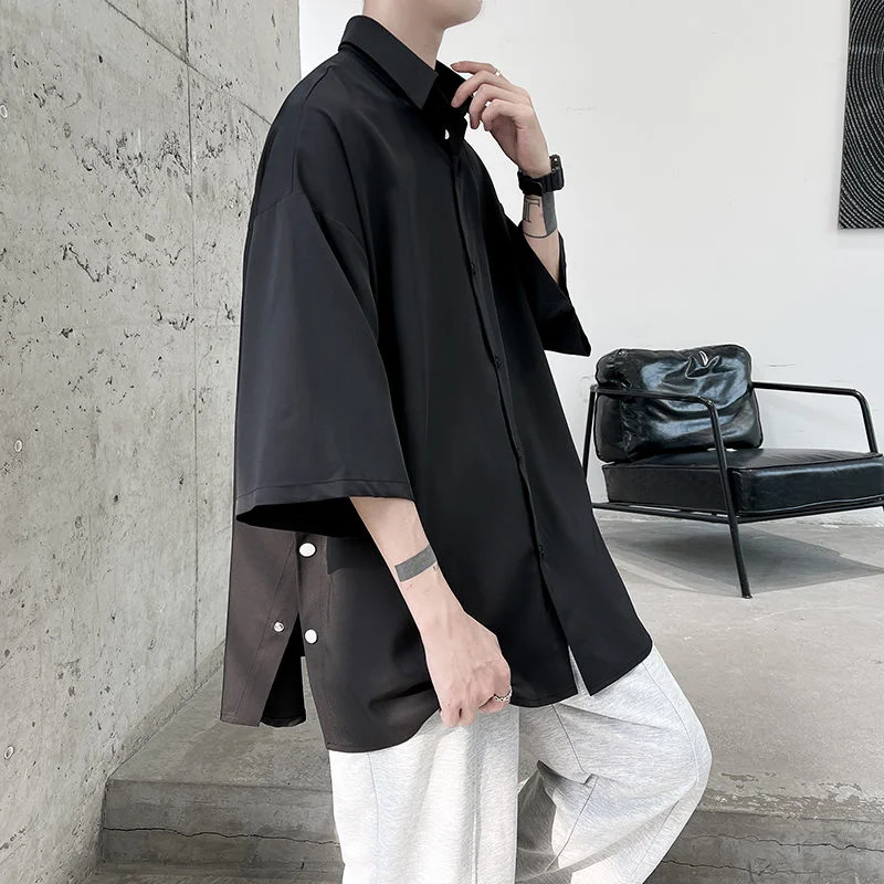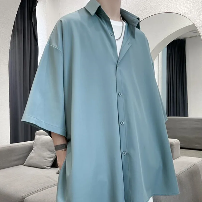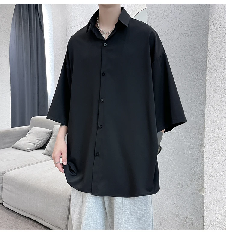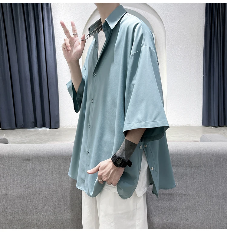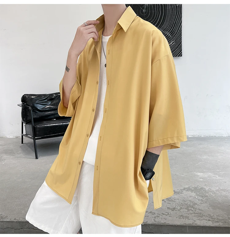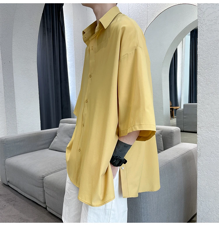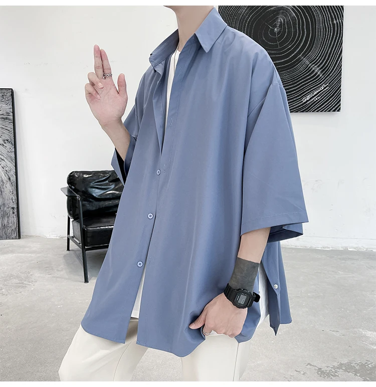 Летняя Классическая рубашка, Мужская модная однотонная Повседневная рубашка на пуговицах, мужские корейские свободные рубашки с коротким рукавом, мужское деловое общество