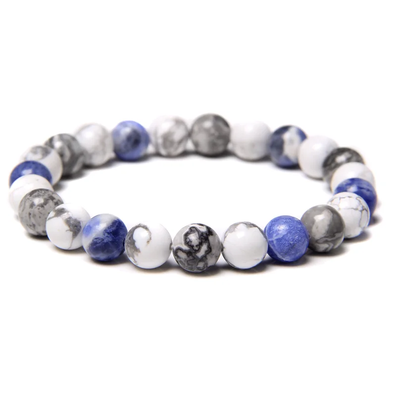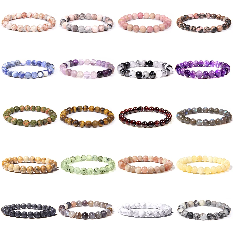 Браслеты из настоящего натурального камня для женщин и мужчин, браслет из растягивающейся веревки, аметист, кварц, лава, 8 мм, круглые бусины, драгоценности
