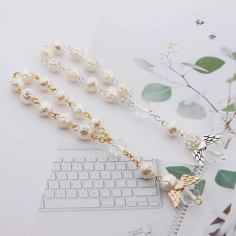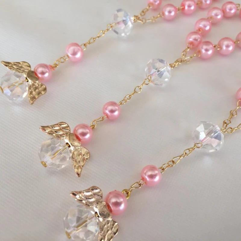 Браслет из бусин розы подарки на крещение с крыльями ангелов, мини-...