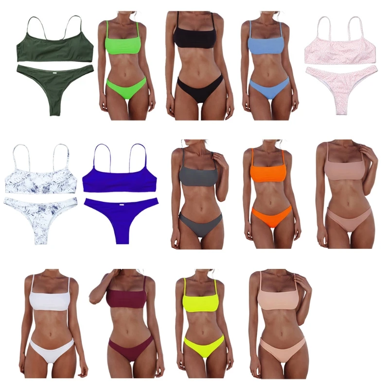 M5TC женский сексуальный бюстгальтер пуш-ап с низкой талией стринги однотонный комплект бикини треугольный купальник