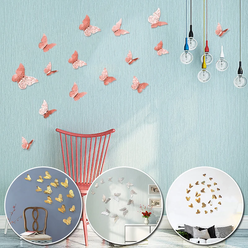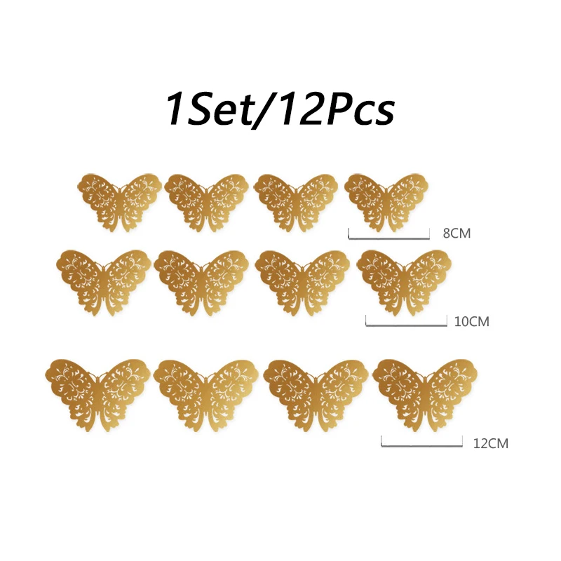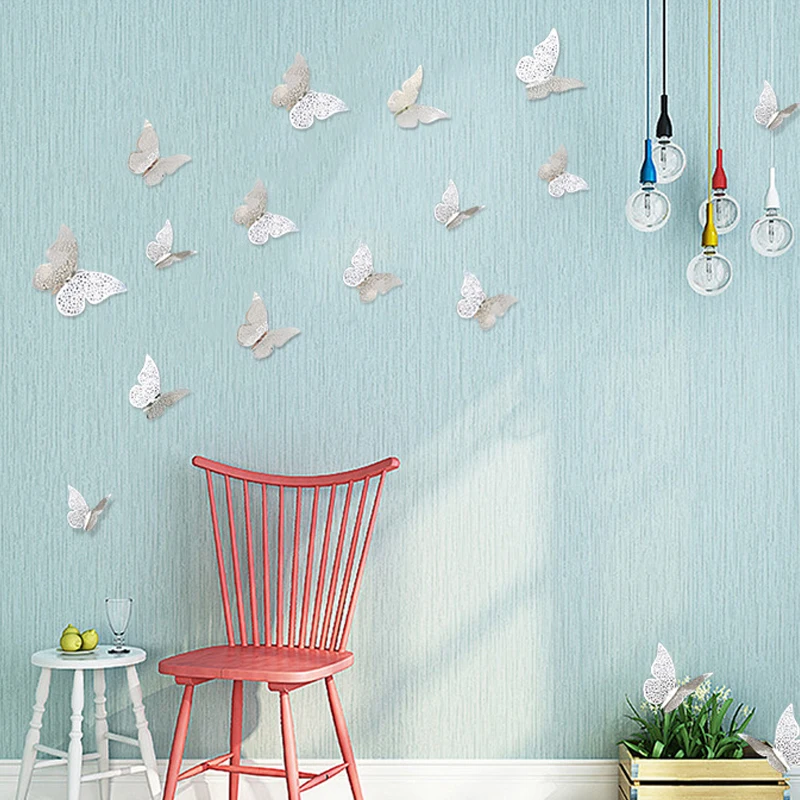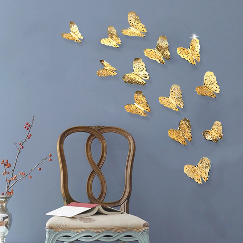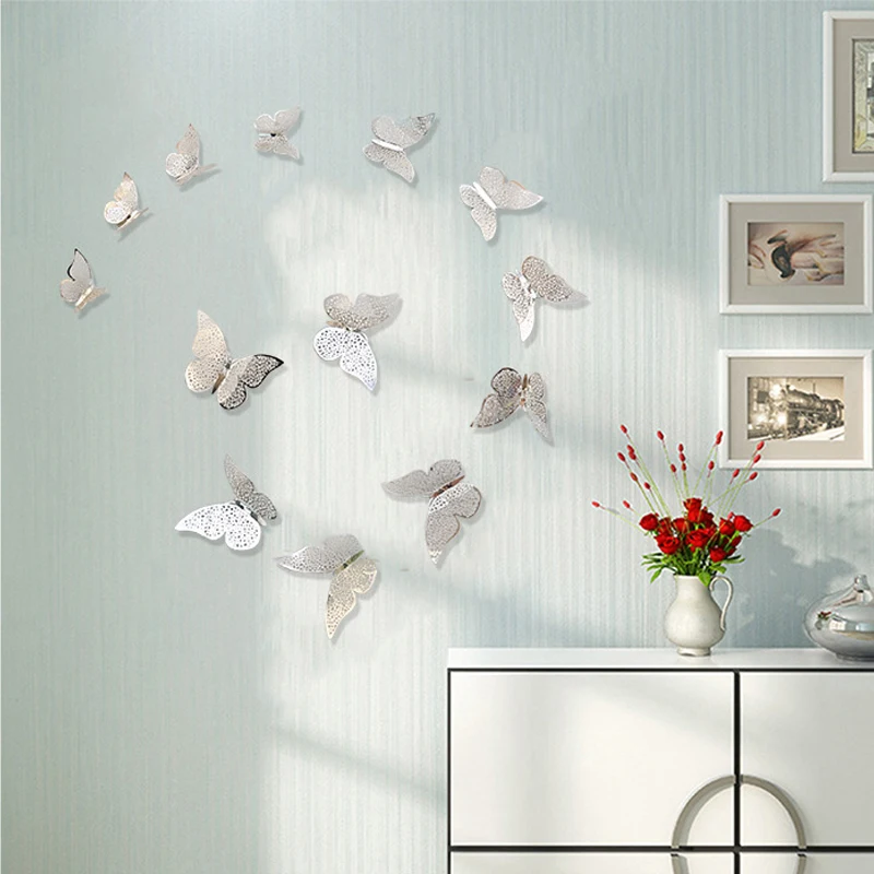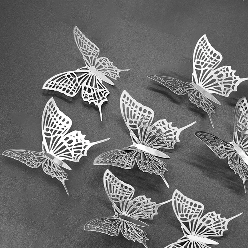 12 шт. золотые и серебряные полые трехмерные бабочки для дома гостиной фон для стены спальни декоративные настенные наклейки