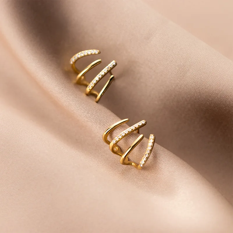Женские многослойные серьги-гвоздики из серебра 925 пробы с фианитами