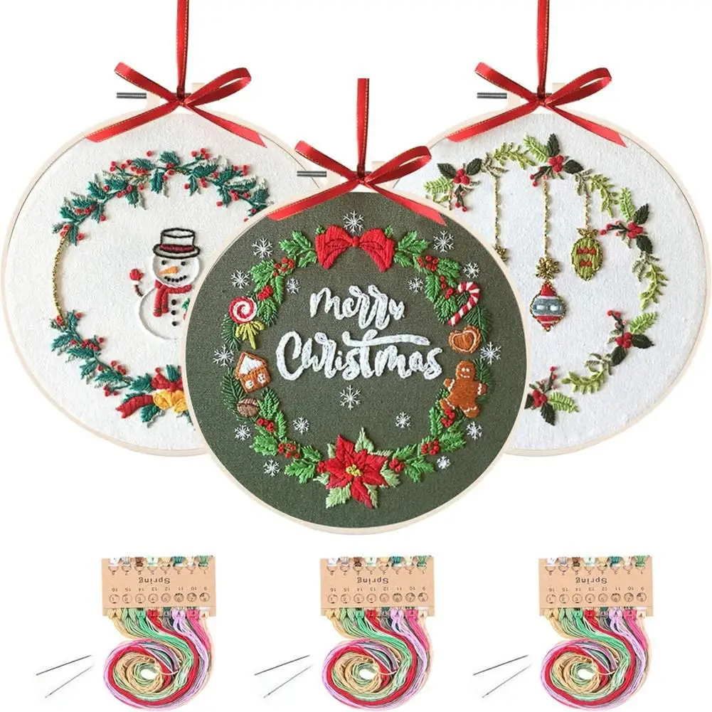 Рождественский узор DIY Вышивка стартовый комплект с обручем для вы...
