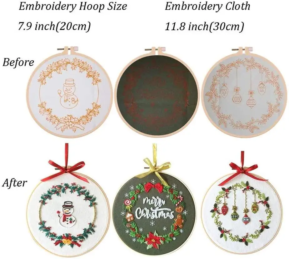 3 предмета в комплекте с полным ассортиментом штампованные вышивка стартовый набор с рождественским узором, перекресная строчка, "сделай сам" Материал набор с обручи