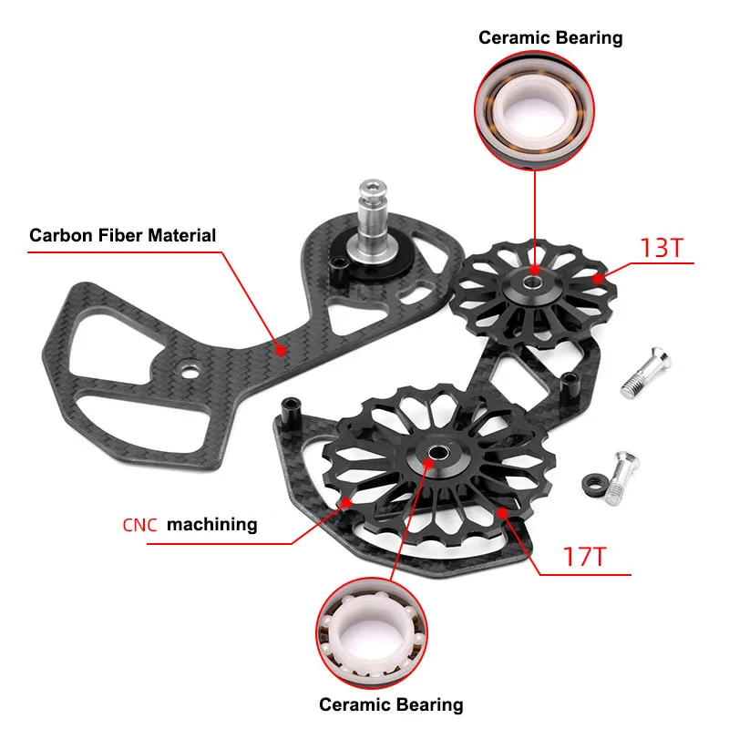 Задний переключатель передач из углеродного волокна для шкива 17T, керамический велосипедный переключатель передач для Shimano R5800 R6800 R7000 R8000 SRAM